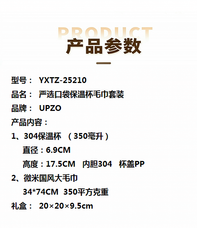 350毫升口袋杯 精致外观搭配优异品质 小清新;微米国风毛巾 精制包边 厚实面料 结合国风刺绣 ;天地盖硬装礼盒 加手提袋设计
