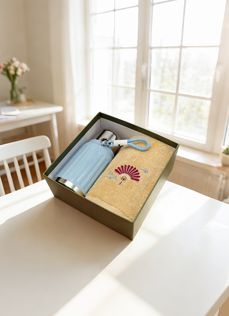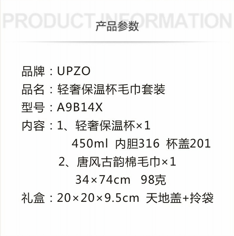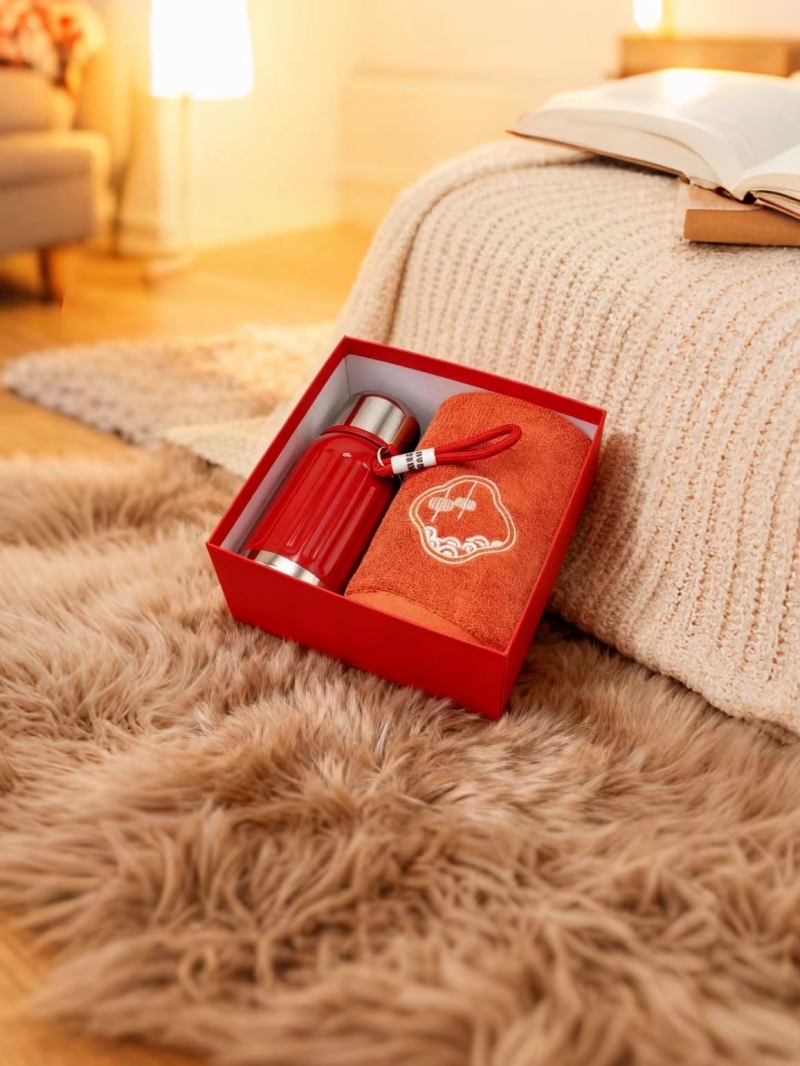 450毫升保温壶 大小合适 316内胆 高颜值;毛巾精梳棉材质 结合国风刺绣主题融入 品质好礼;天地盖精装礼盒加手提袋设计
