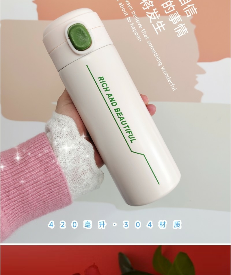 保温杯:420毫升容量 内胆304 杯盖PP