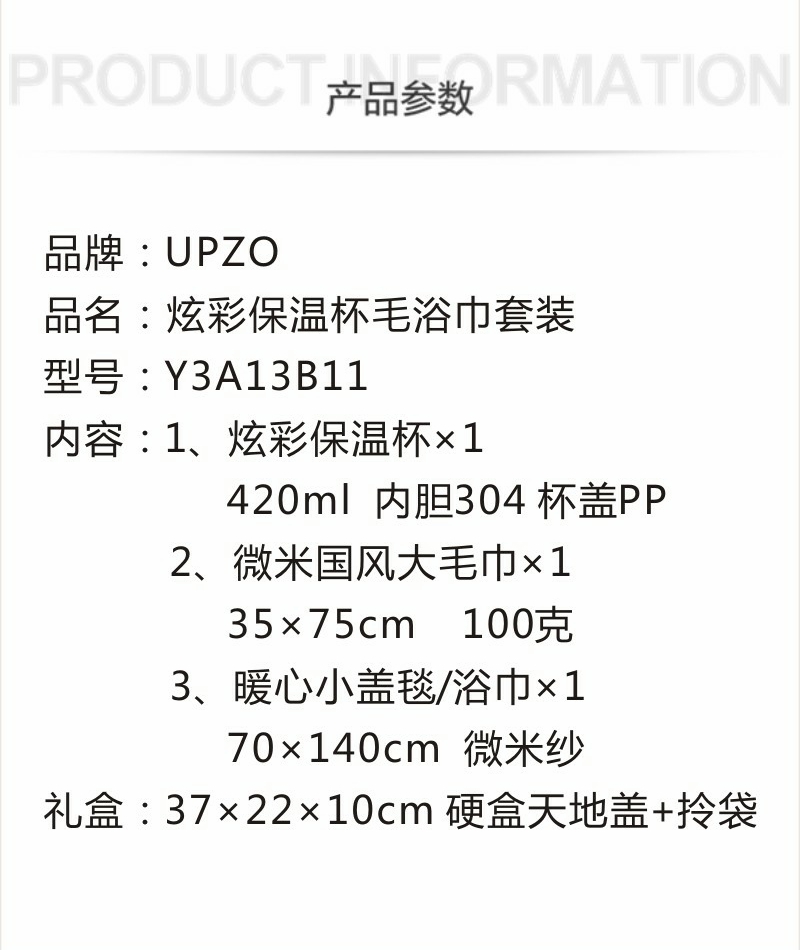 配置清单:浴巾小盖毯*1、国风微米毛巾*1、保温杯*1