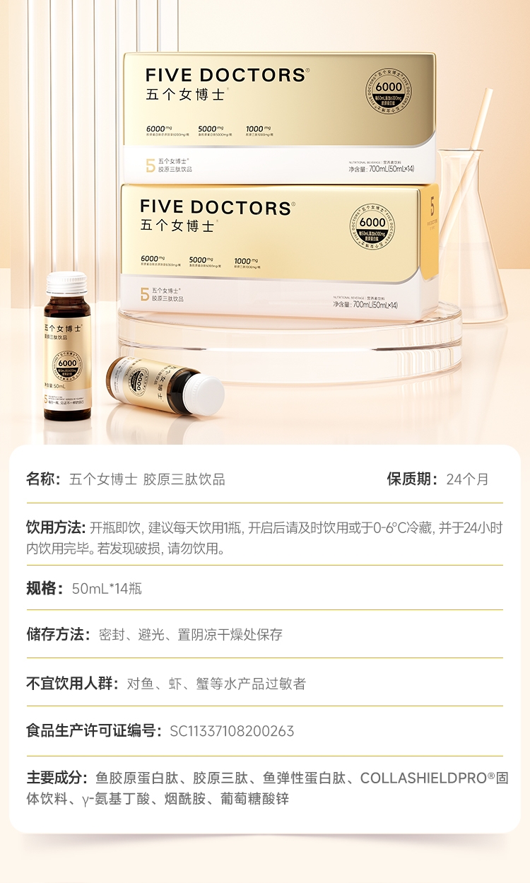 五个女博士 胶原三肽饮品50ml*14瓶