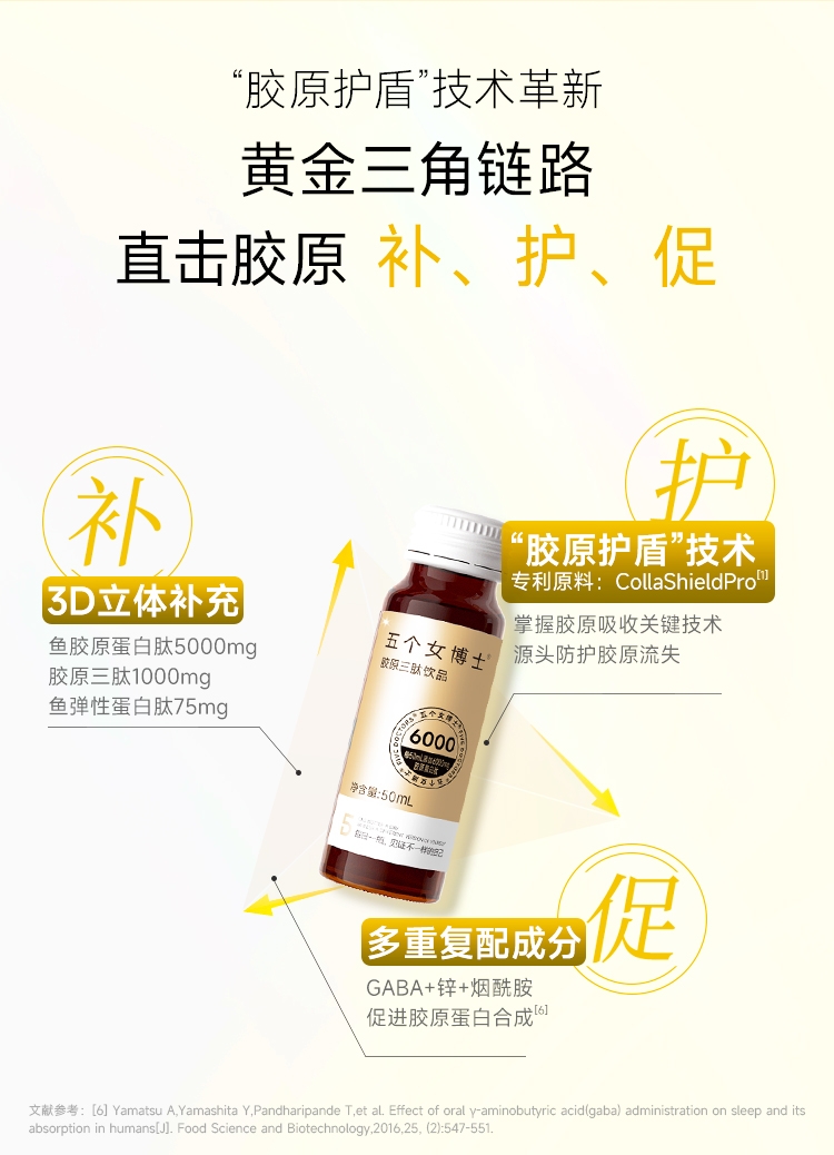 实现胶原吸收补、护、促;胶原护盾技术;多重复配成分