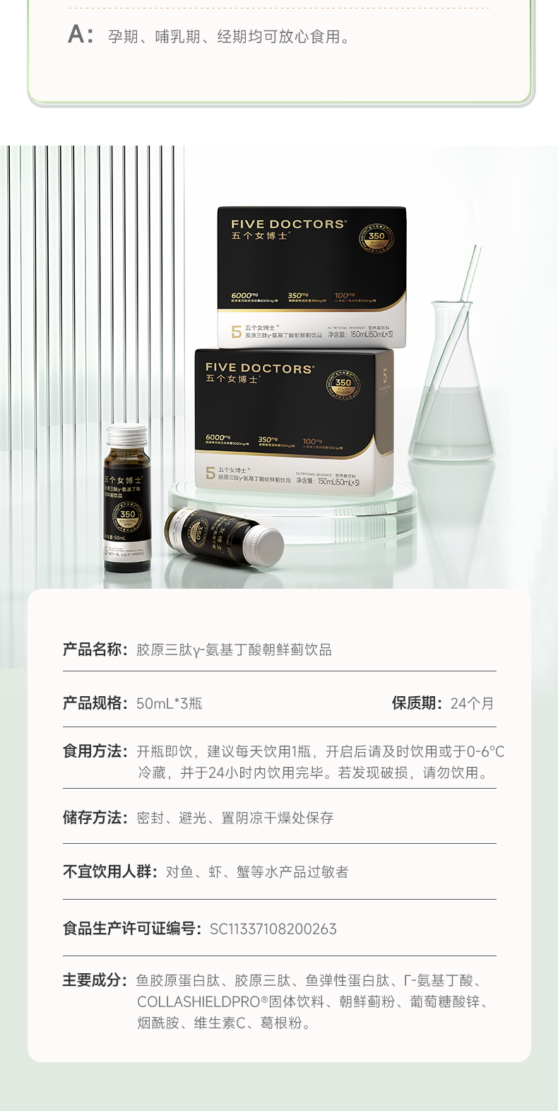 五个女博士 γ-氨基丁酸朝鲜蓟饮50ml*3瓶