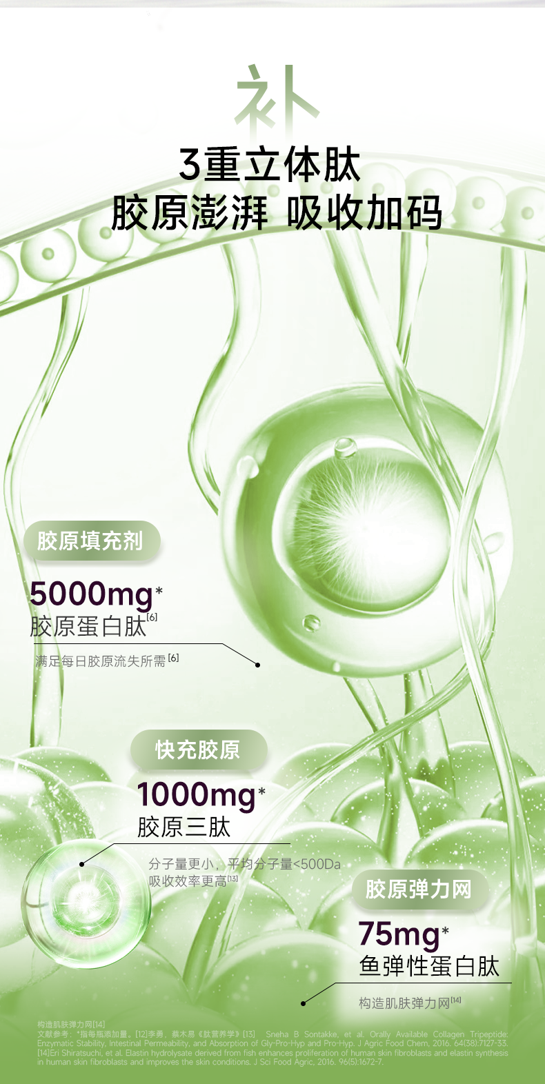 清新可口 纯享美味;3重立体肽;胶原澎湃 吸收加码