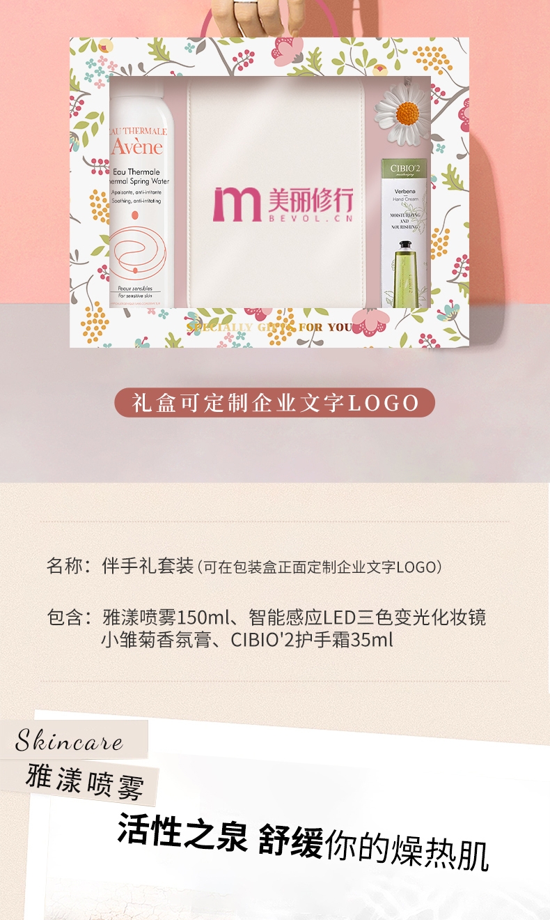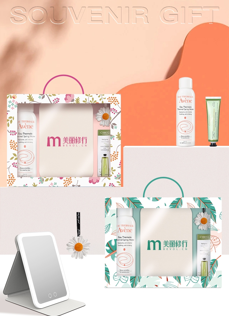 配置清单:雅漾喷雾150ml+小雏菊香膏+cibio护手霜35ml+智能感应LED三色变光化妆镜
