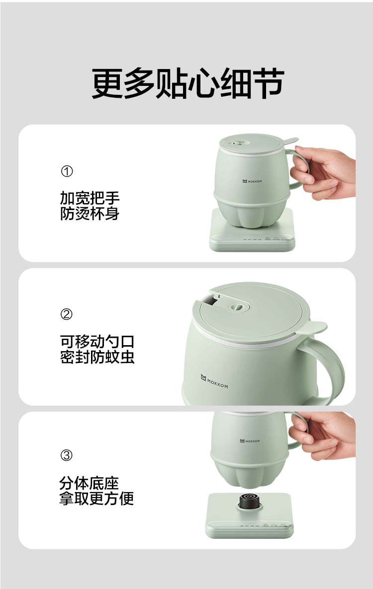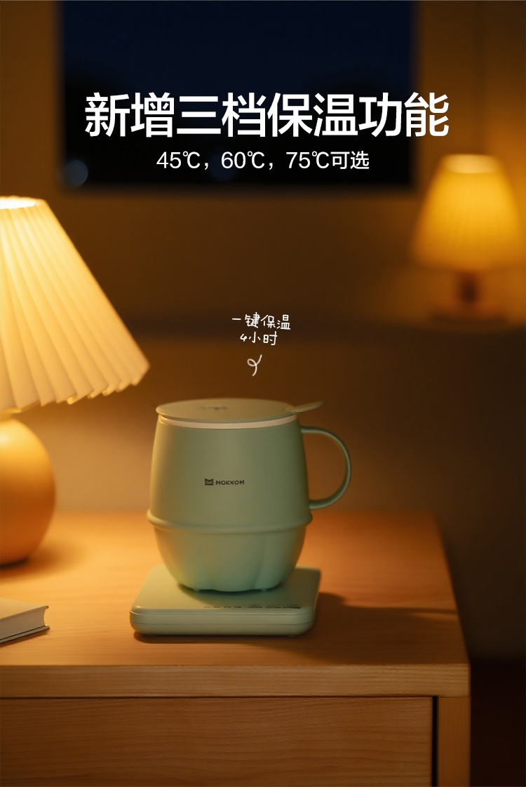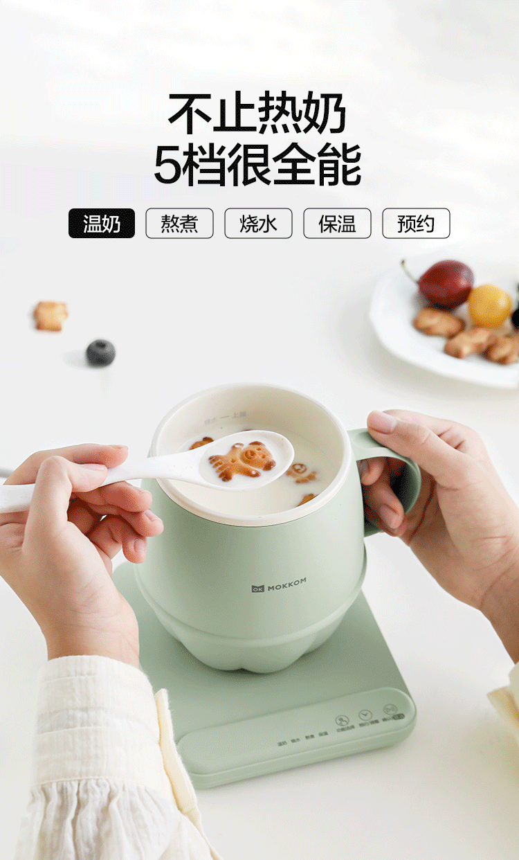 可预约可调时,最长预约12H,;新增三档保温功能,45度,60度,75度可选。;五档功能很全能,温奶、熬煮、烧水、保温