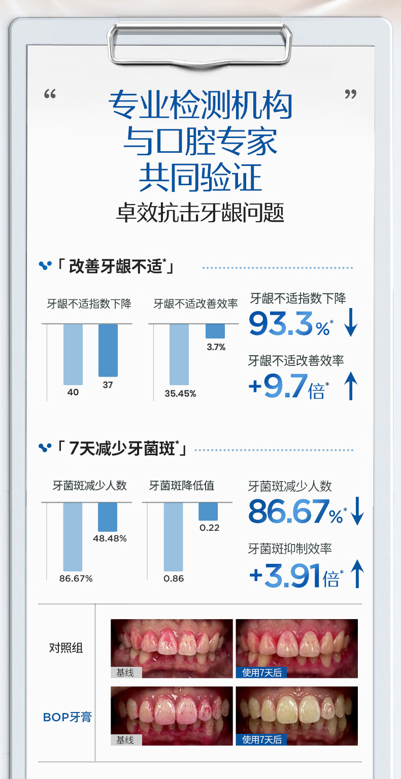 7天减少牙菌斑;显著改善牙龈问题;温和不刺激