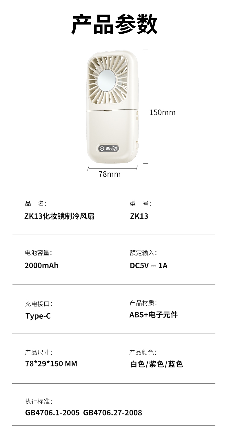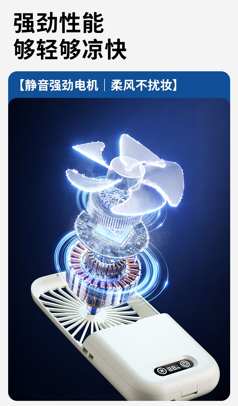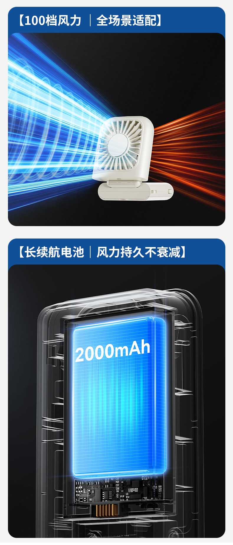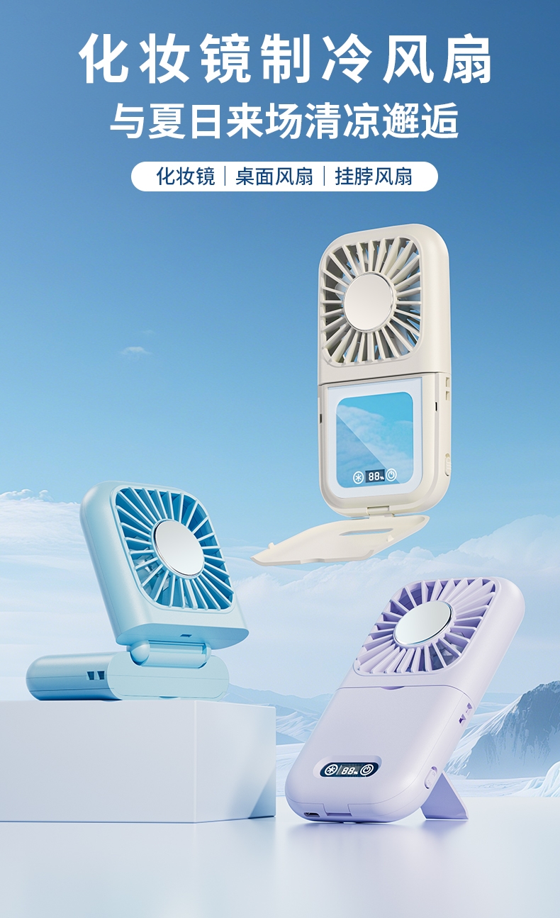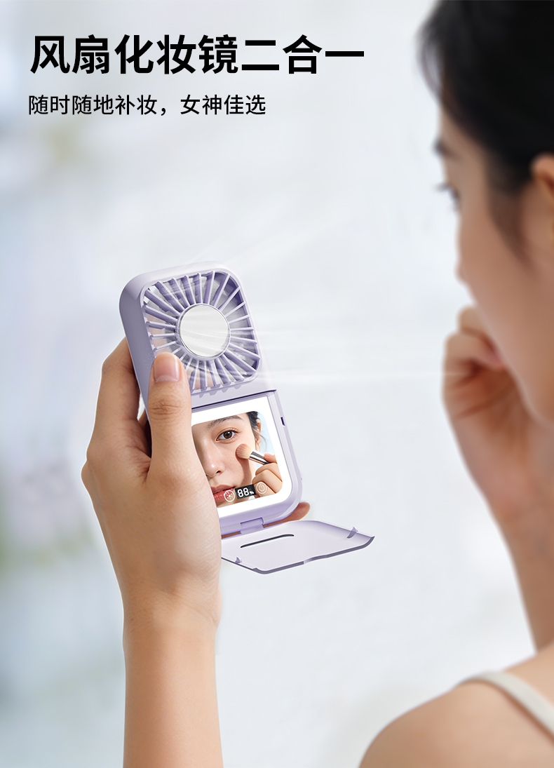 补妆 + 吹风二合一,内置高清补妆镜;折叠后如粉饼大小,可轻松放入化妆包;内置大容量电池,Type-C 接口快充