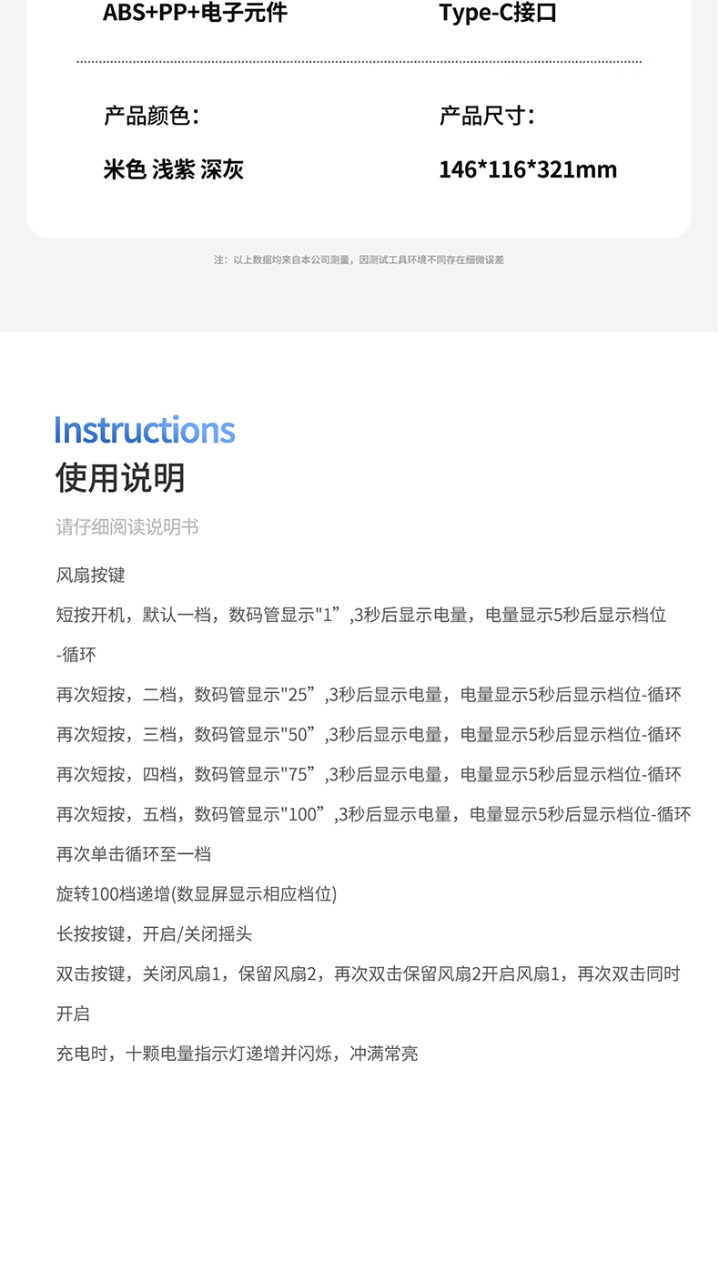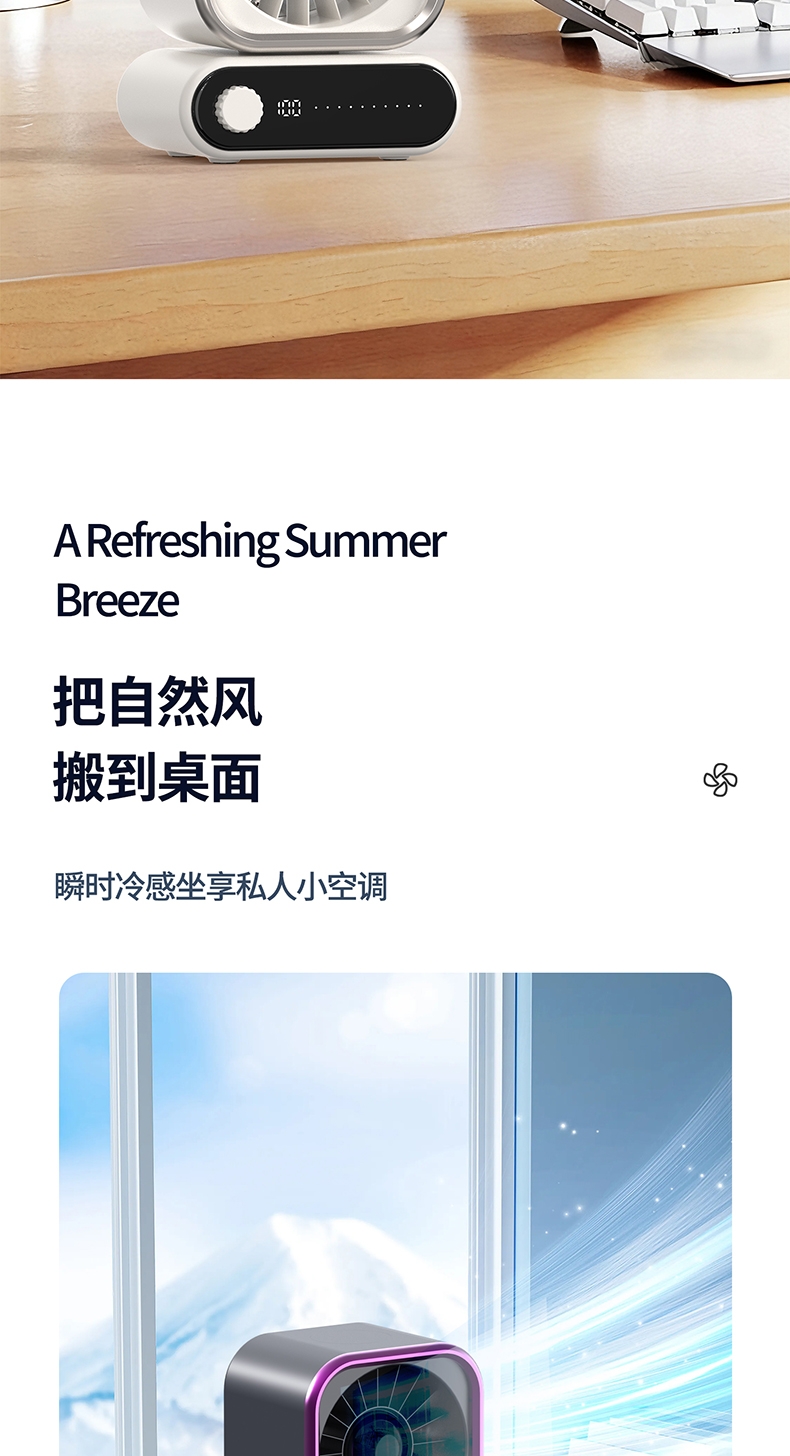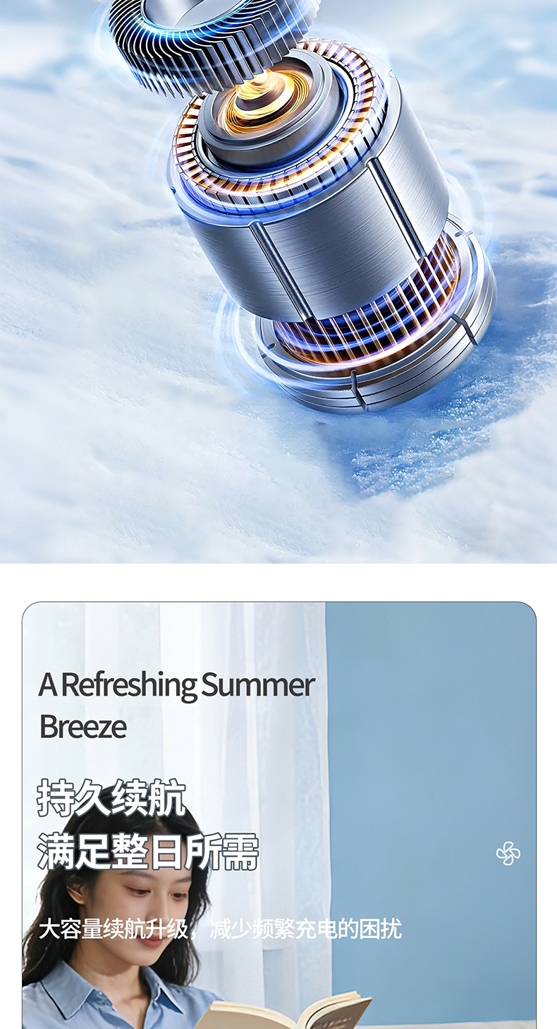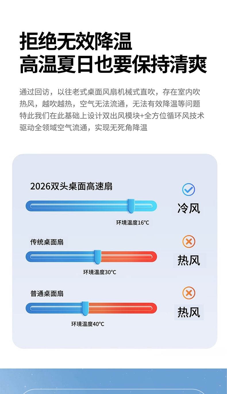 100档风力,旋钮无极调节;自动摇头,双头多角度送风,满足不同需求;模拟自然风,安静舒适,桌面好物