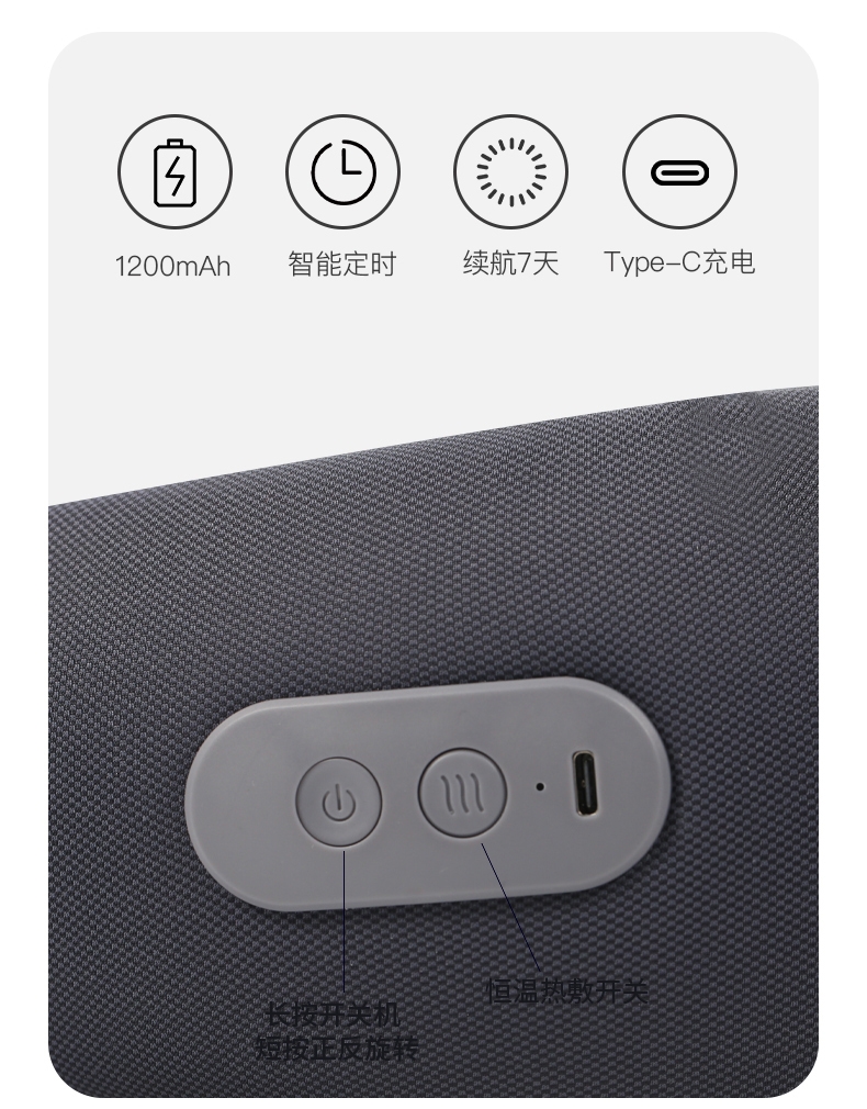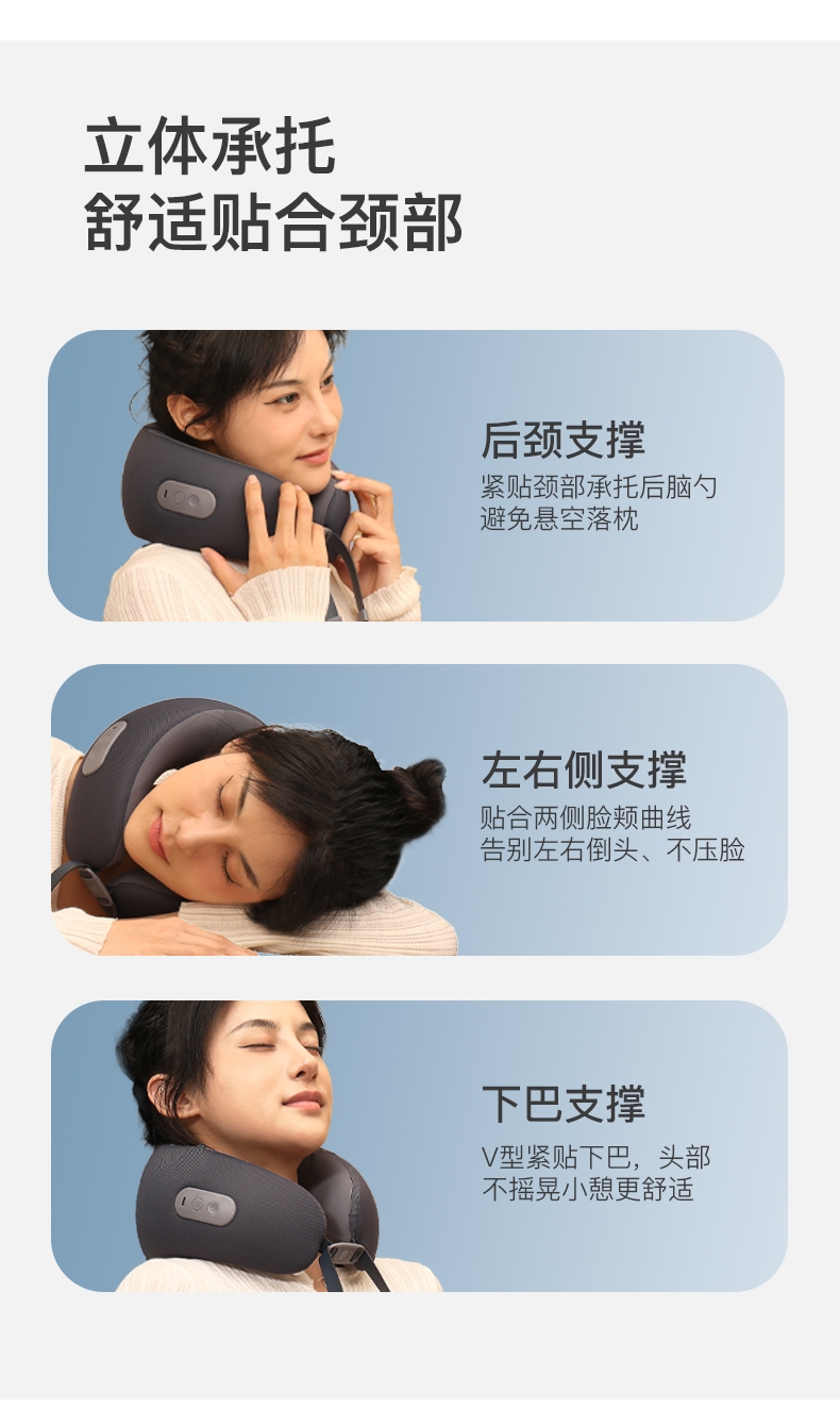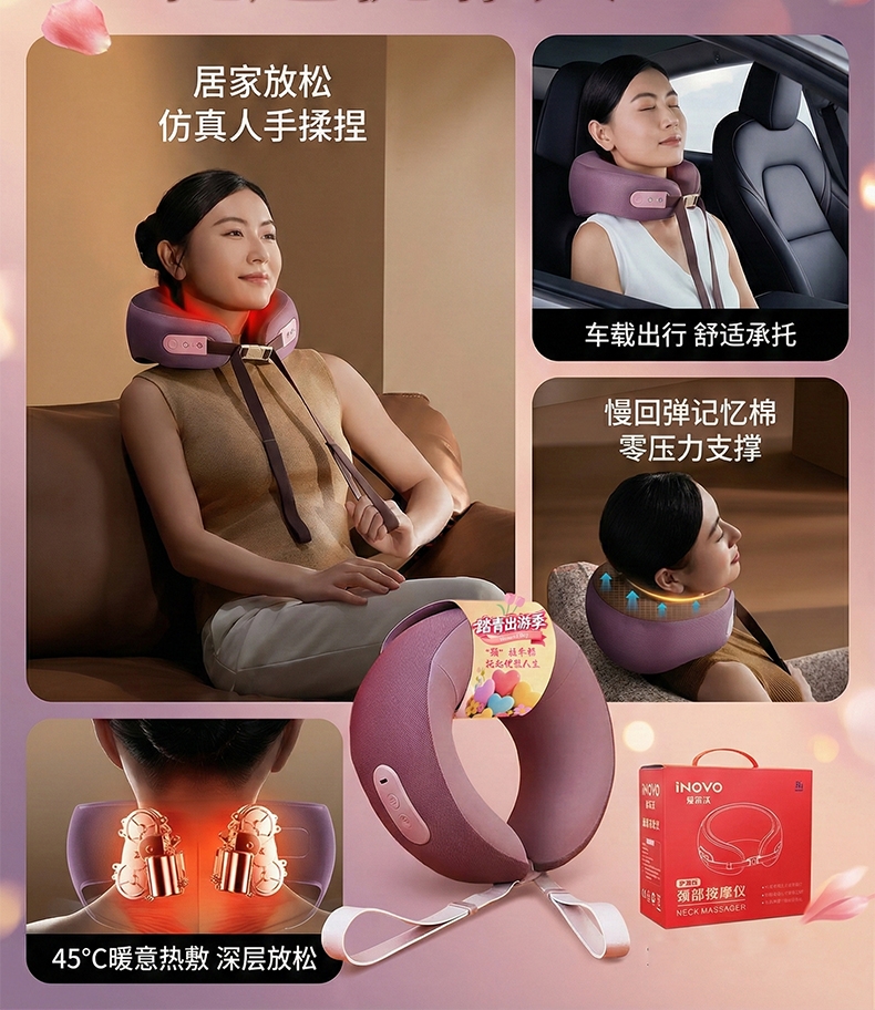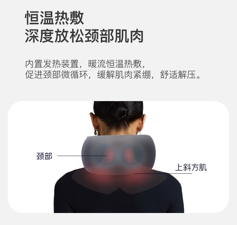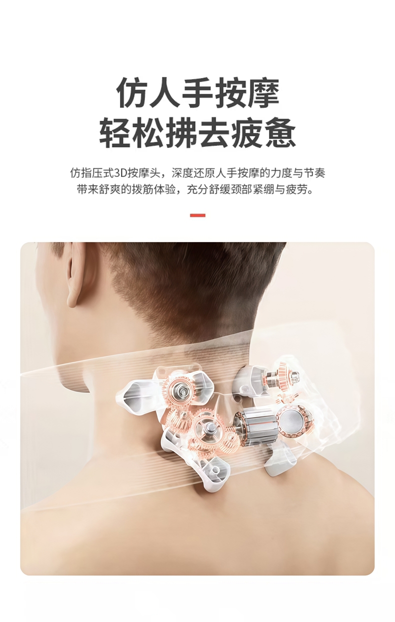 仿真人双头按摩手感 强电机高配; 360°环颈支撑 高密度回弹记忆棉;C口便携可充电 智能定时15分钟模式