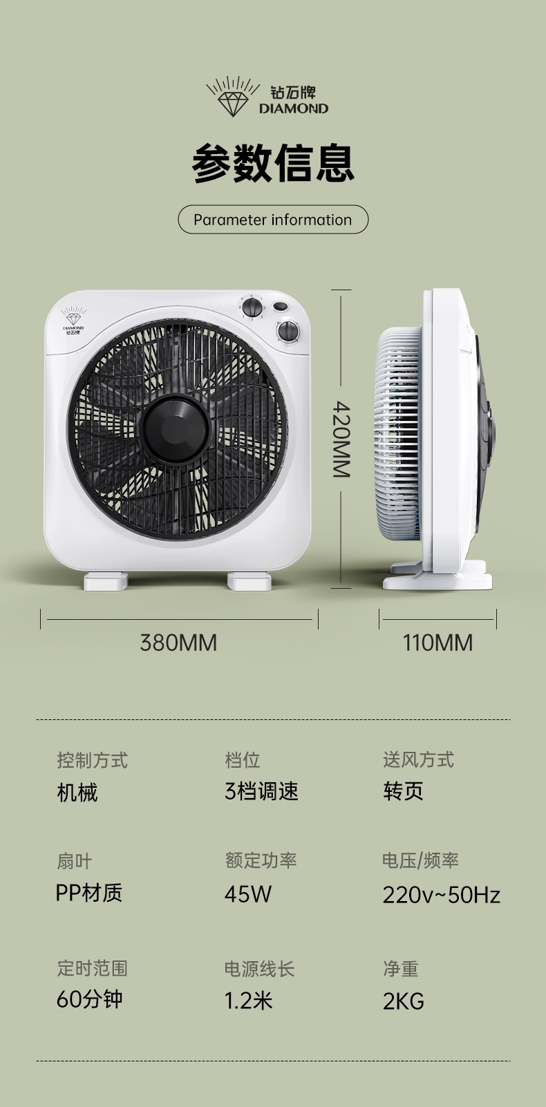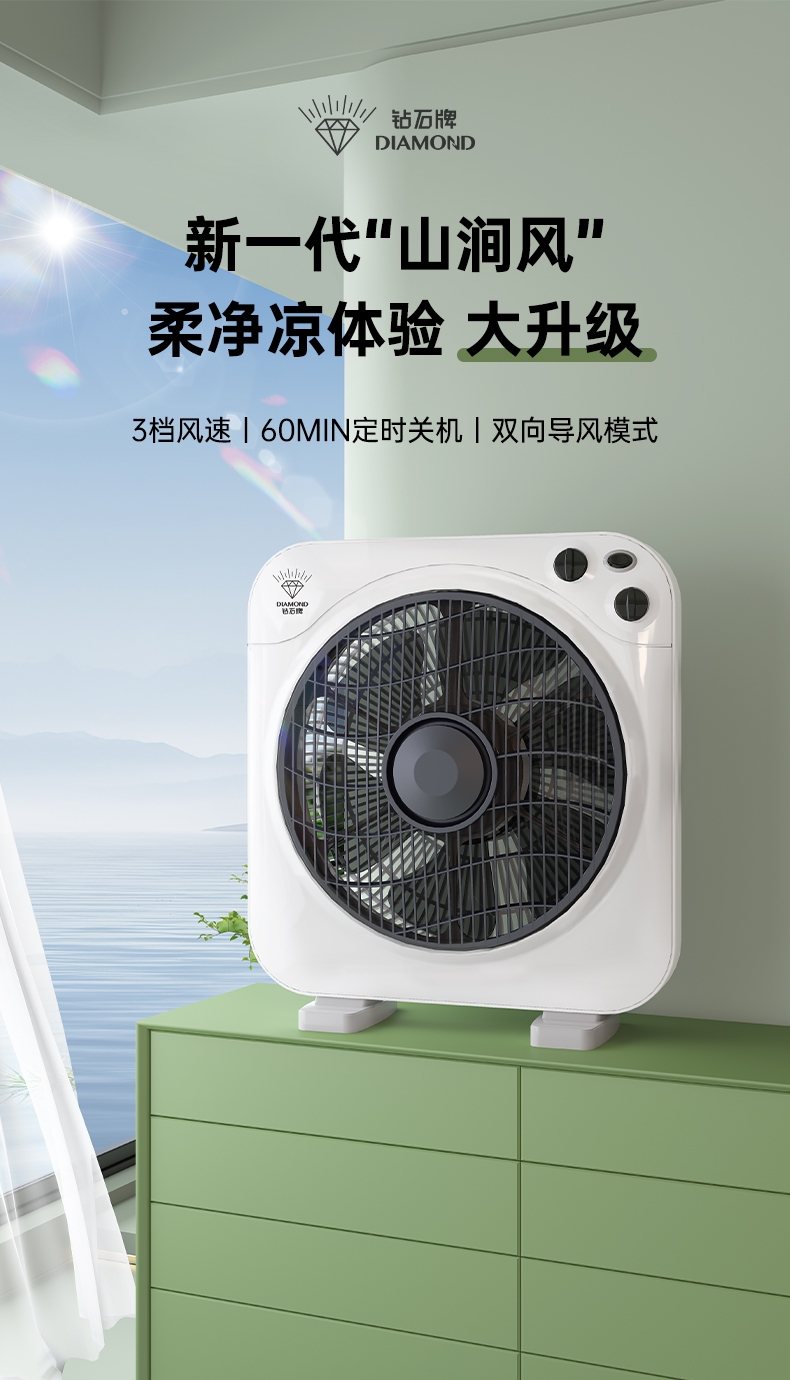 钻石牌 台式风扇家用定时转页扇DS30-3