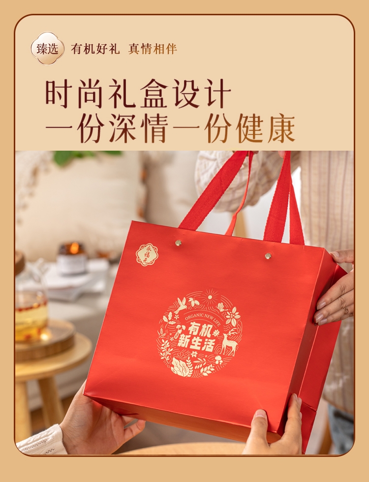 有机产品,健康、安全、不添加、全程可追溯。;符合现代人对食材营养、美味的高品质要求,;适合送礼、商务及伴手礼。