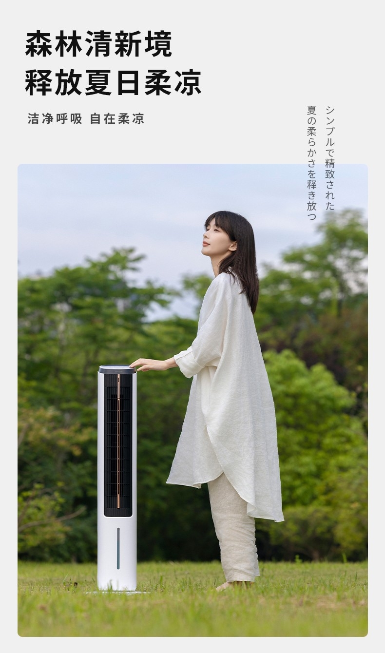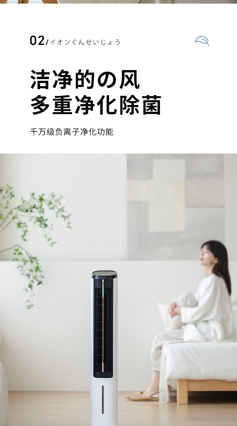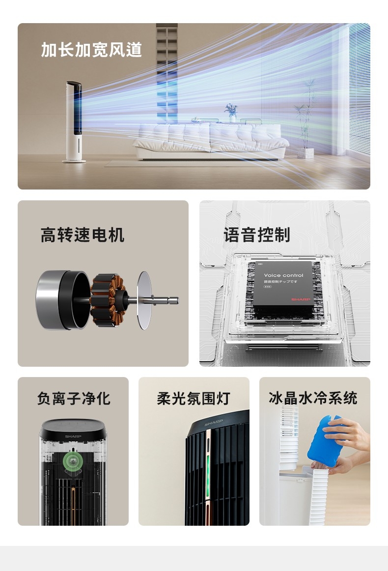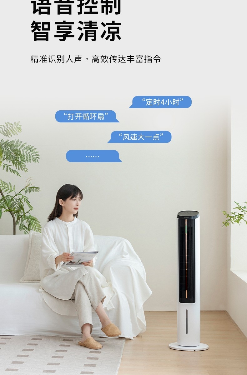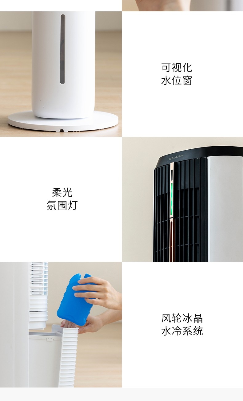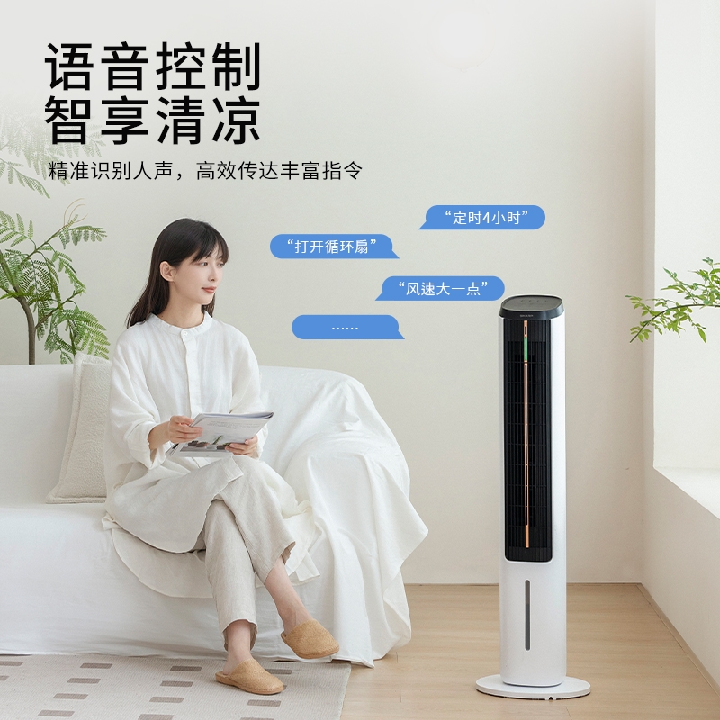 时尚立塔式外观造型、经典高雅黑白质感配色;遥控+触控+声控多重模式,近触或远程操控更便携;水冷系统+双湿帘蒸发设计+加长贯流风轮冰晶水冷系统