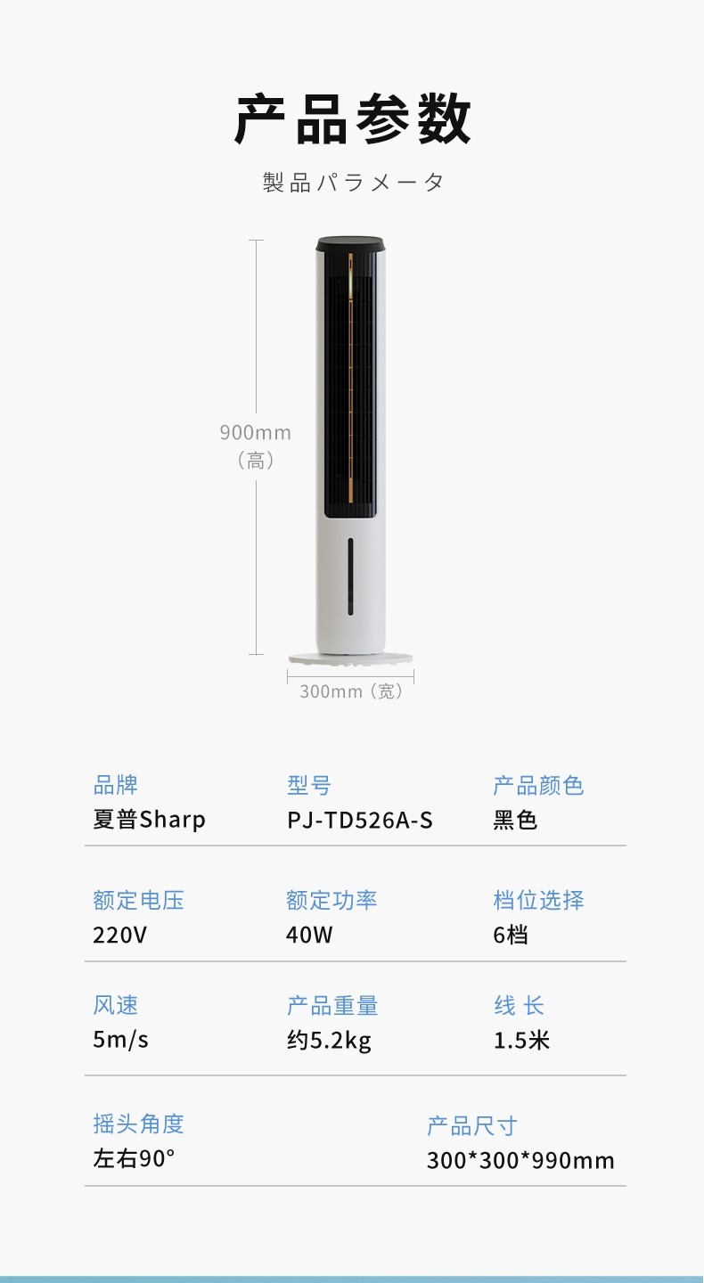 夏普 电子语音水冷塔扇PJ-TD526A-S