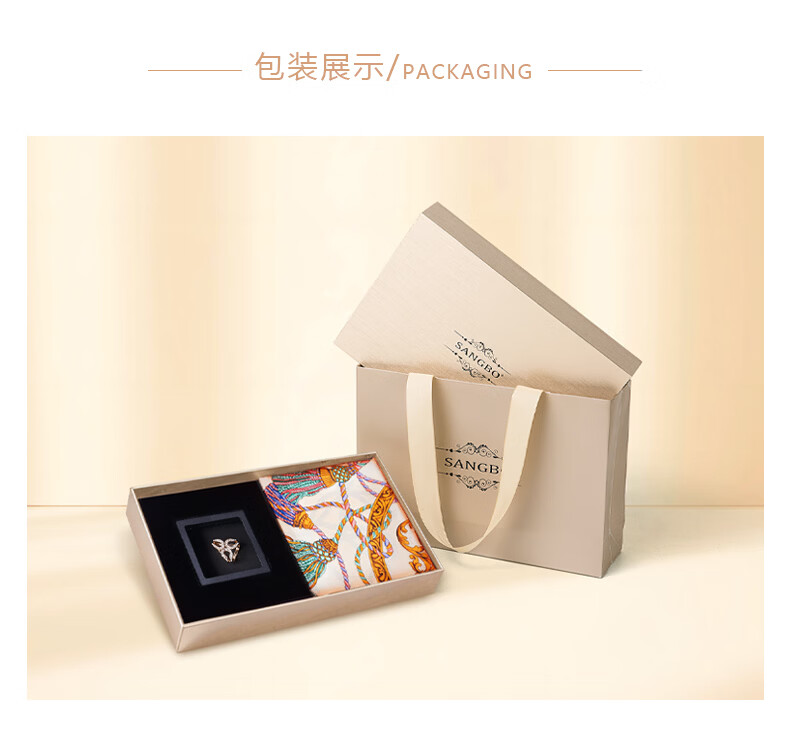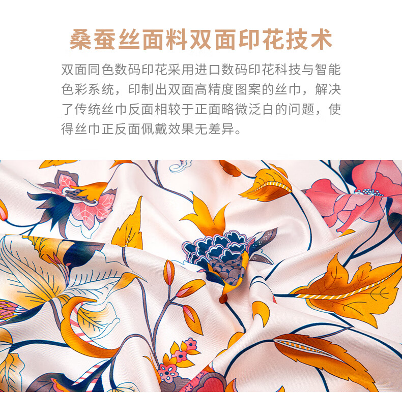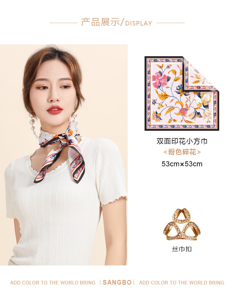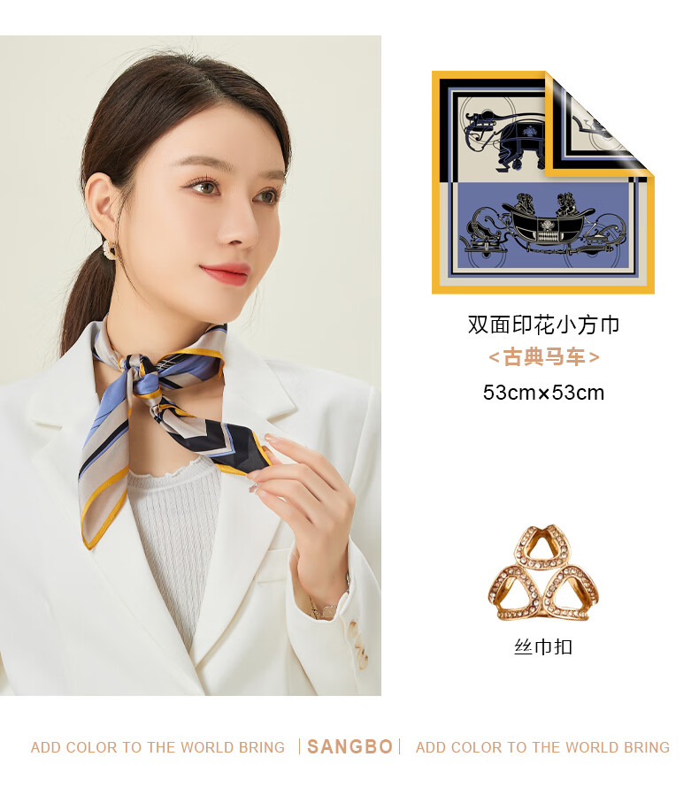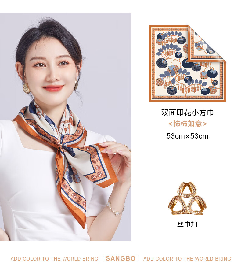 桑柏 双面印花真丝小方巾丝巾扣礼盒