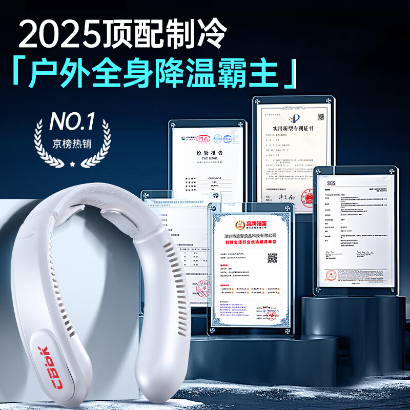 2025 顶配无叶制冷,全身快速降温,户外久戴无负;长续航静音运行,充电便携,学生通勤出行都适配;轻量化佩戴零压感,简约冰川白,送礼自用两相宜