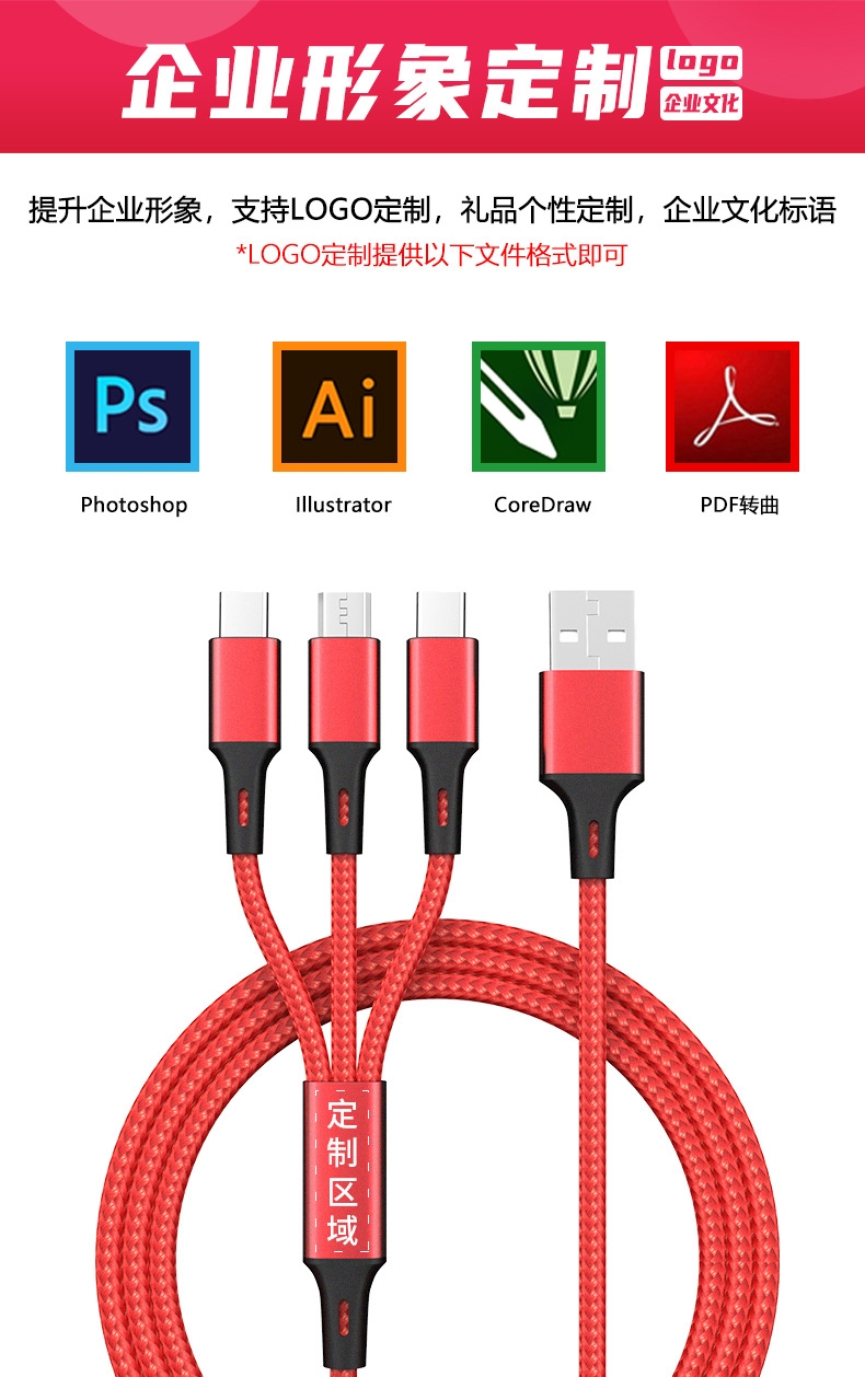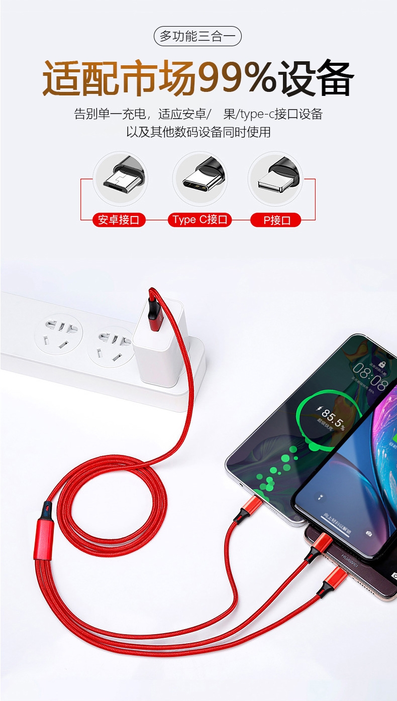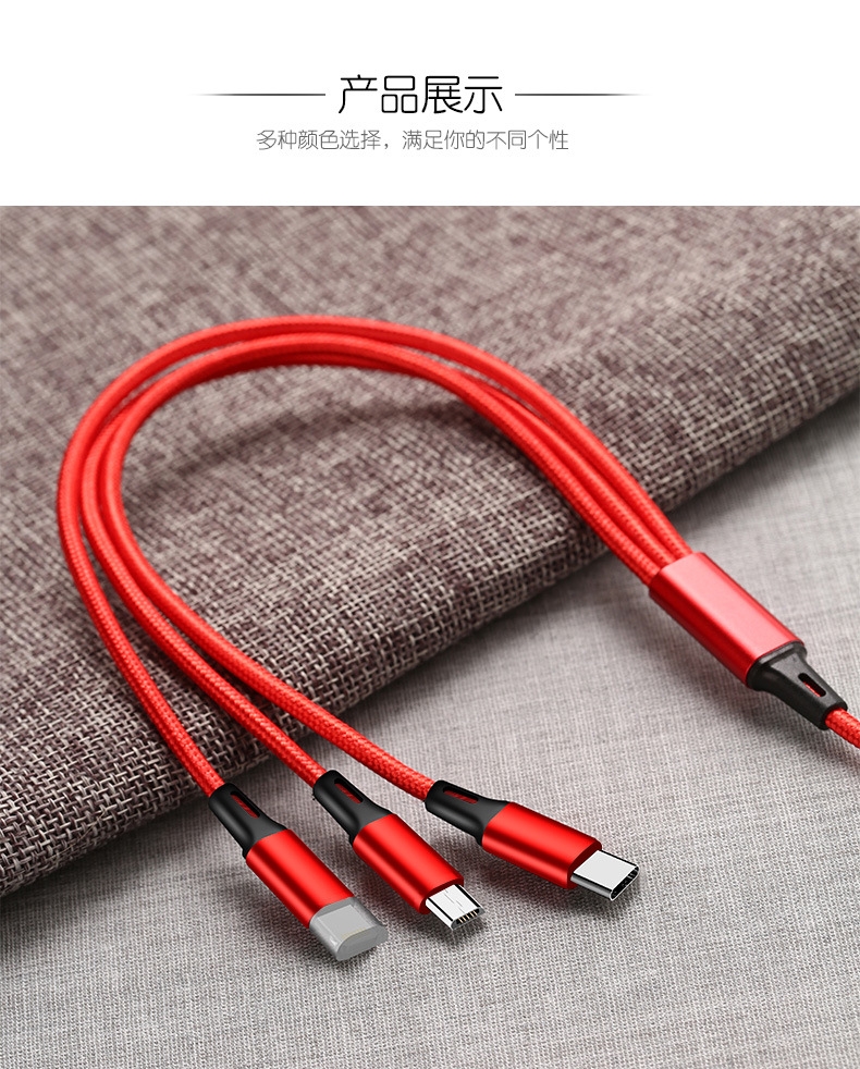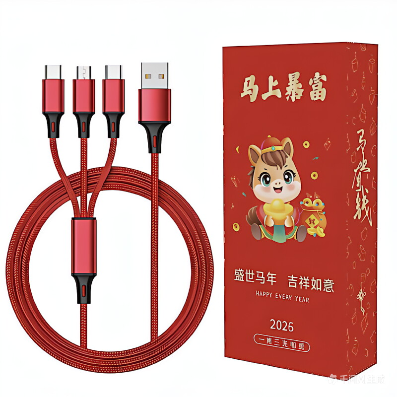 马年开门红赠礼佳品,Type-c、苹果、安卓三合一;线长1.2米,2A输出,尼龙纺织线,持久耐用。;马上暴富中国红喜庆包装盒