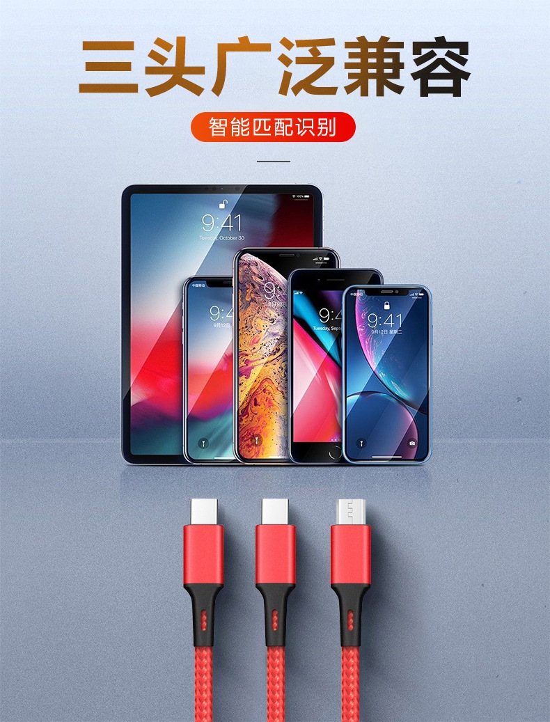 Pengdexin 一拖三数据线1.2m