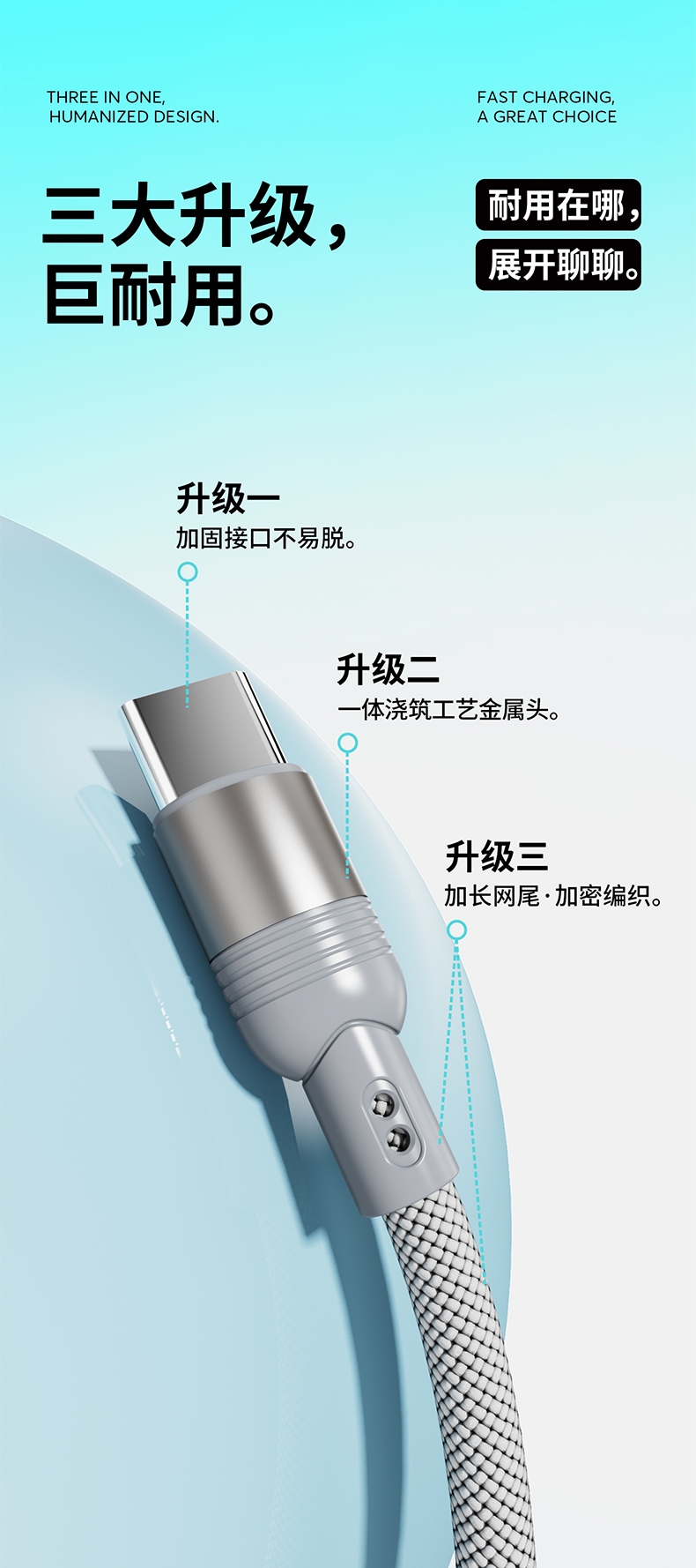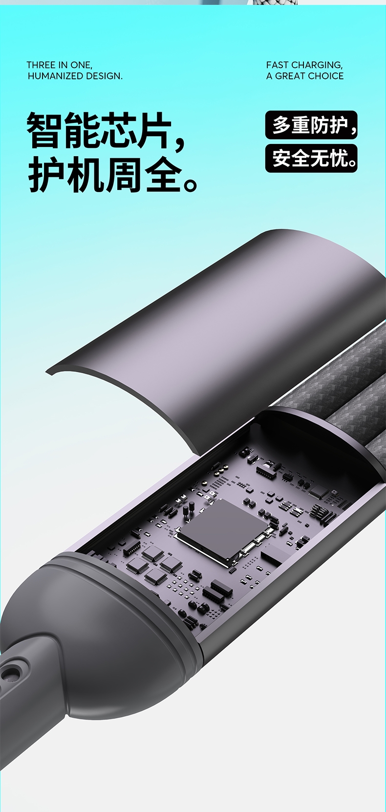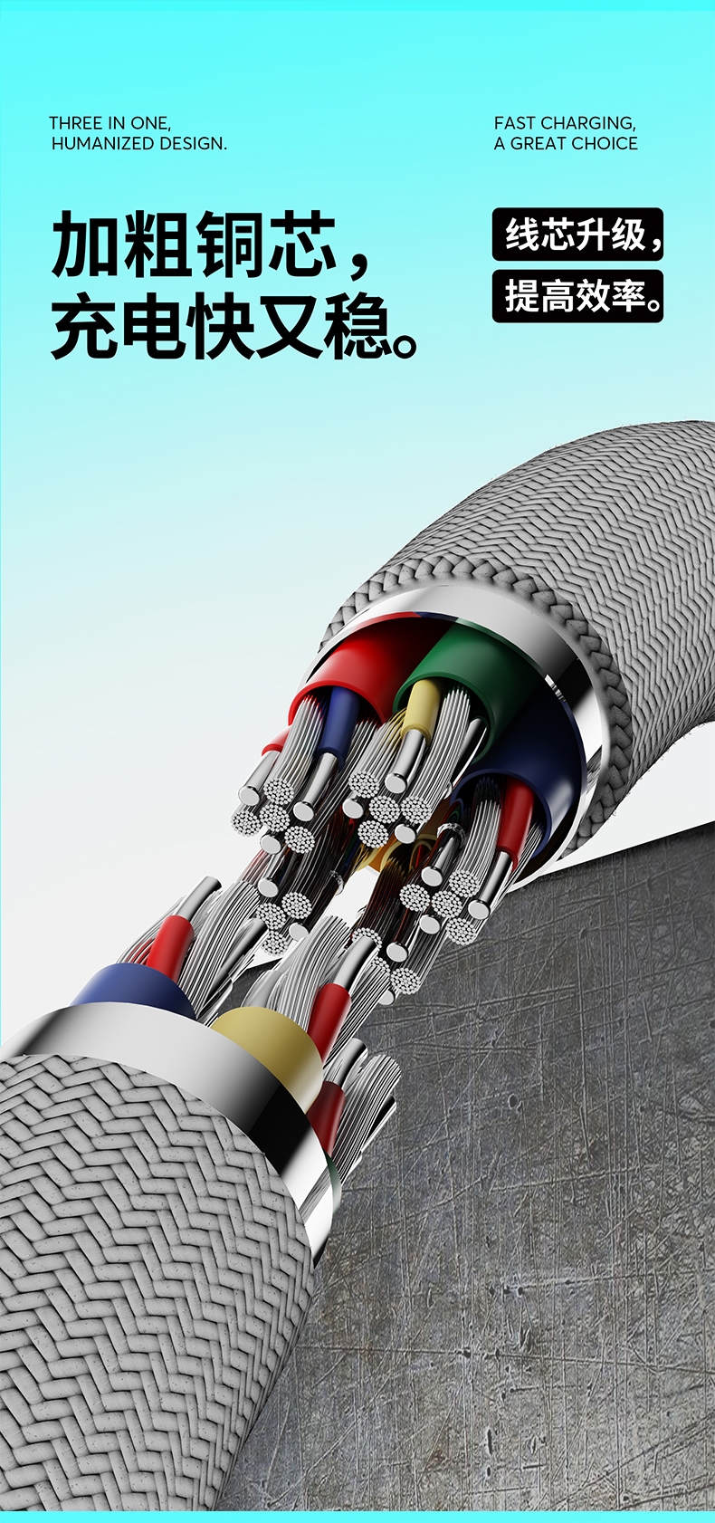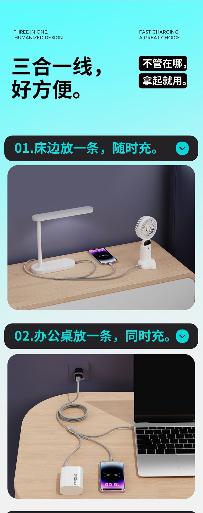马年开门红赠礼佳品,线长1.2米,;5A输出, Type-c、苹果、安卓三合一;二拖三快速充电,兼容手机,平板,电脑多设备充电