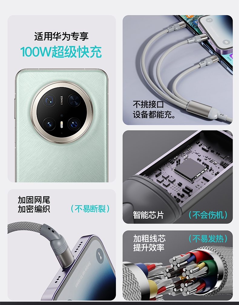 Pengdexin 100W二拖三超级快充数据线
