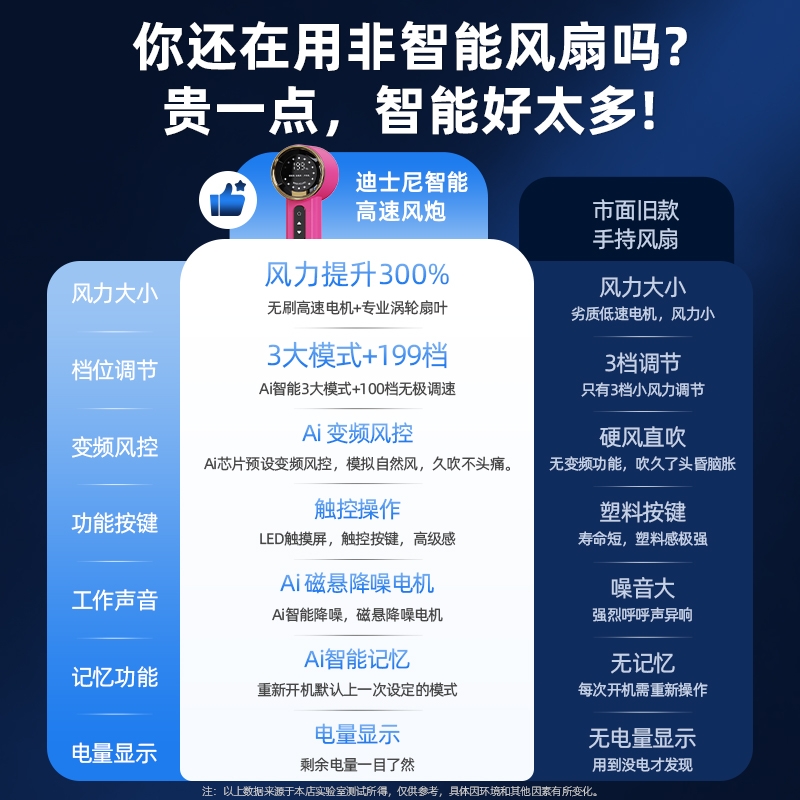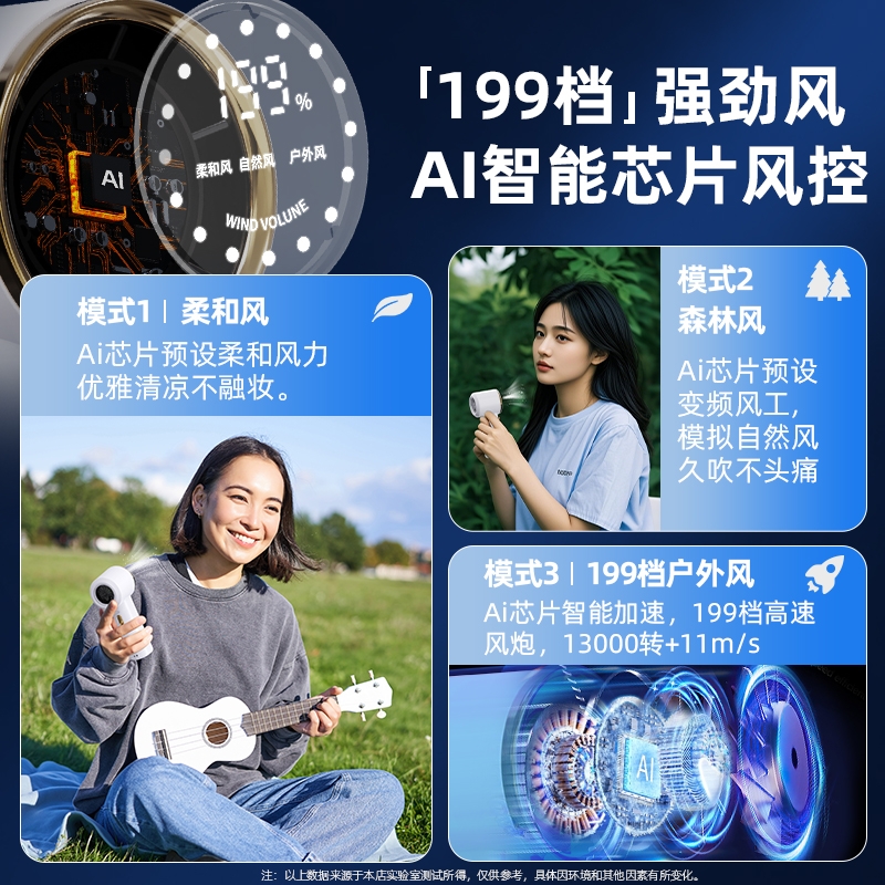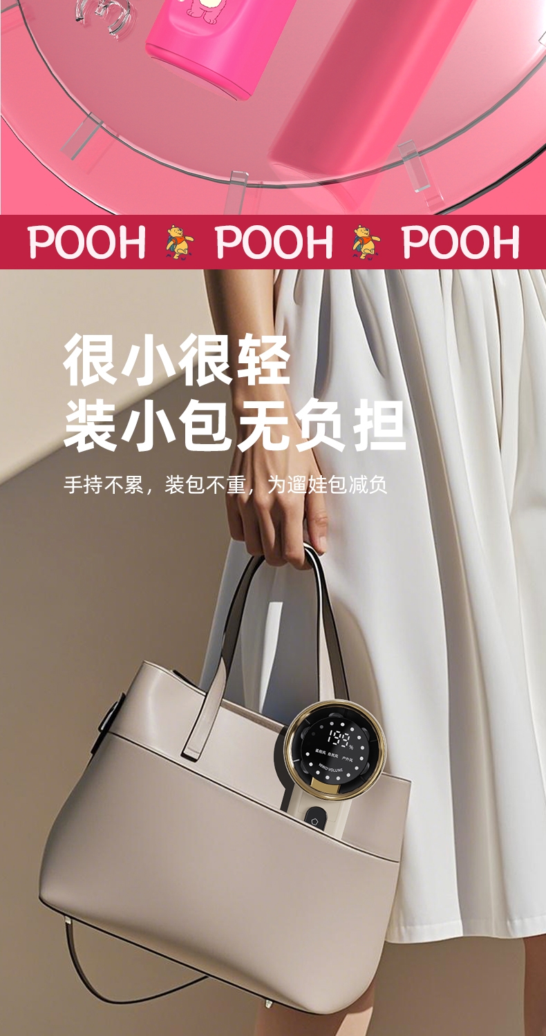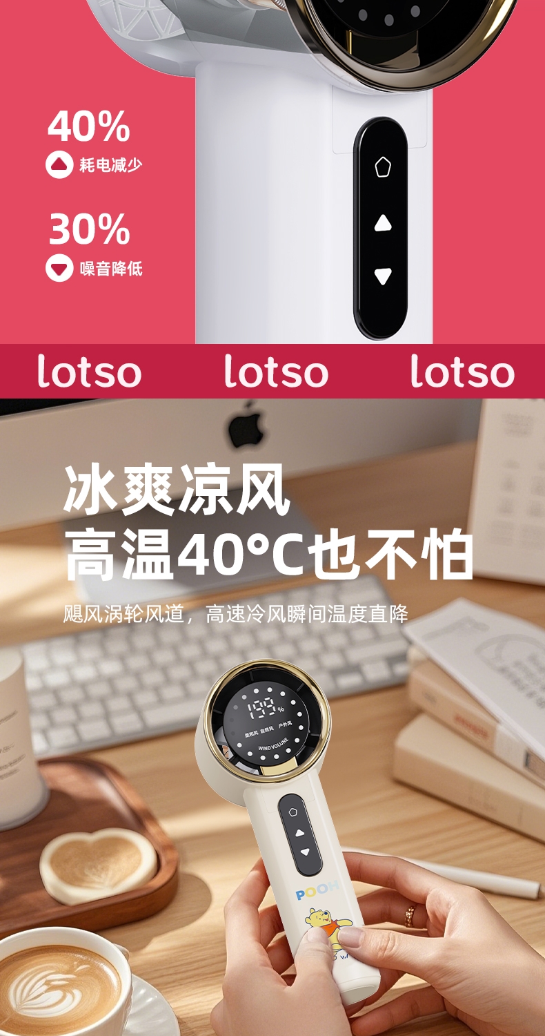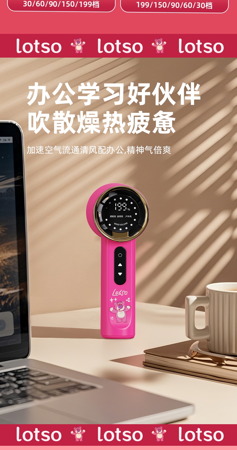 机身质感细腻,轻奢金边环设计,送礼或自用都可;199 档无极调速,高清数显面板,风力状态一目了然;无叶涡轮设计,避免长发或儿童手指卷入,使用更安心