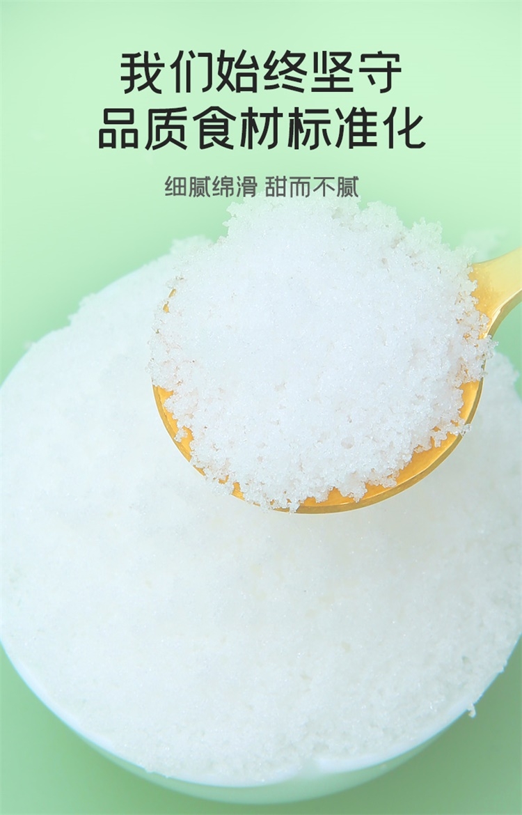 轻柔如雪;细腻洁白;清甜易溶