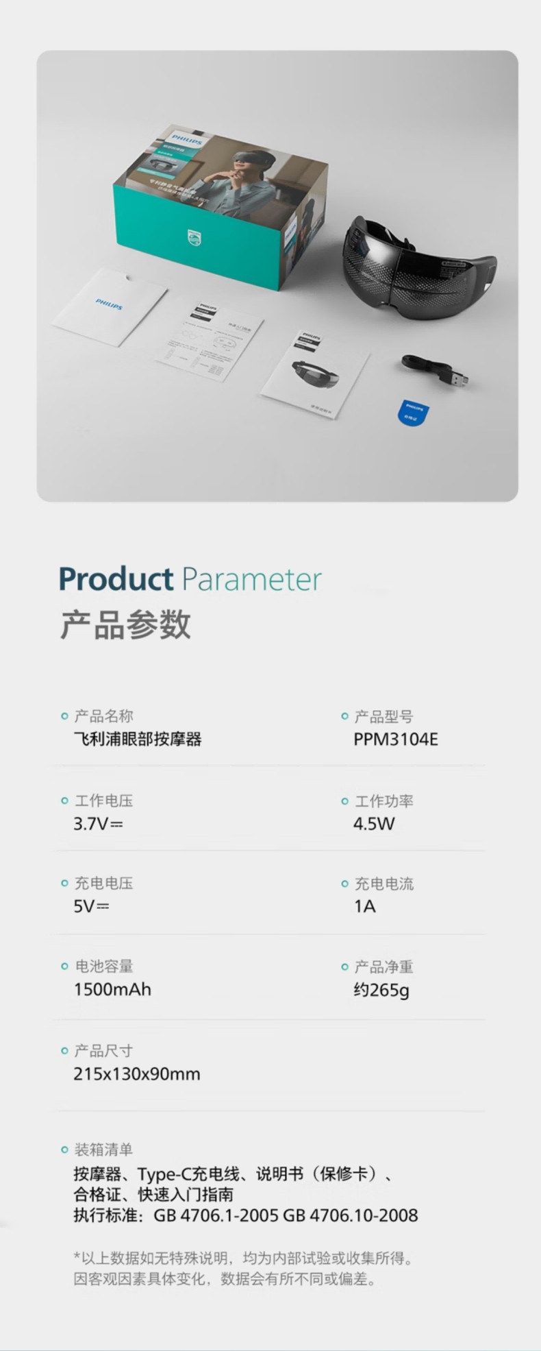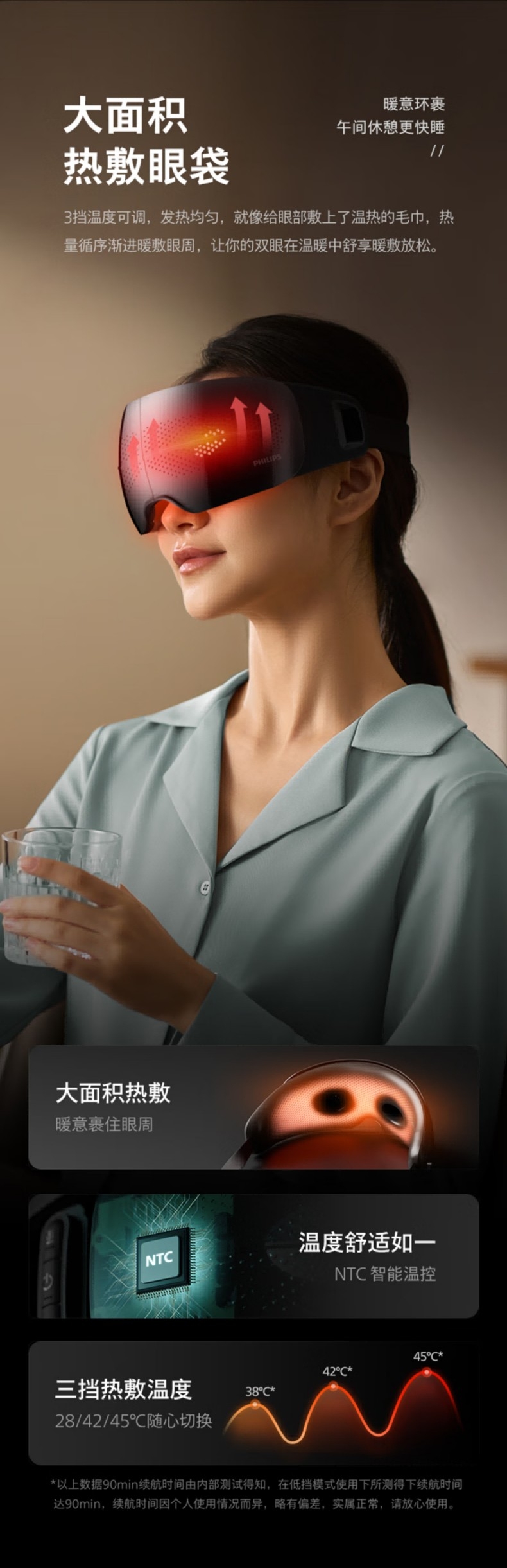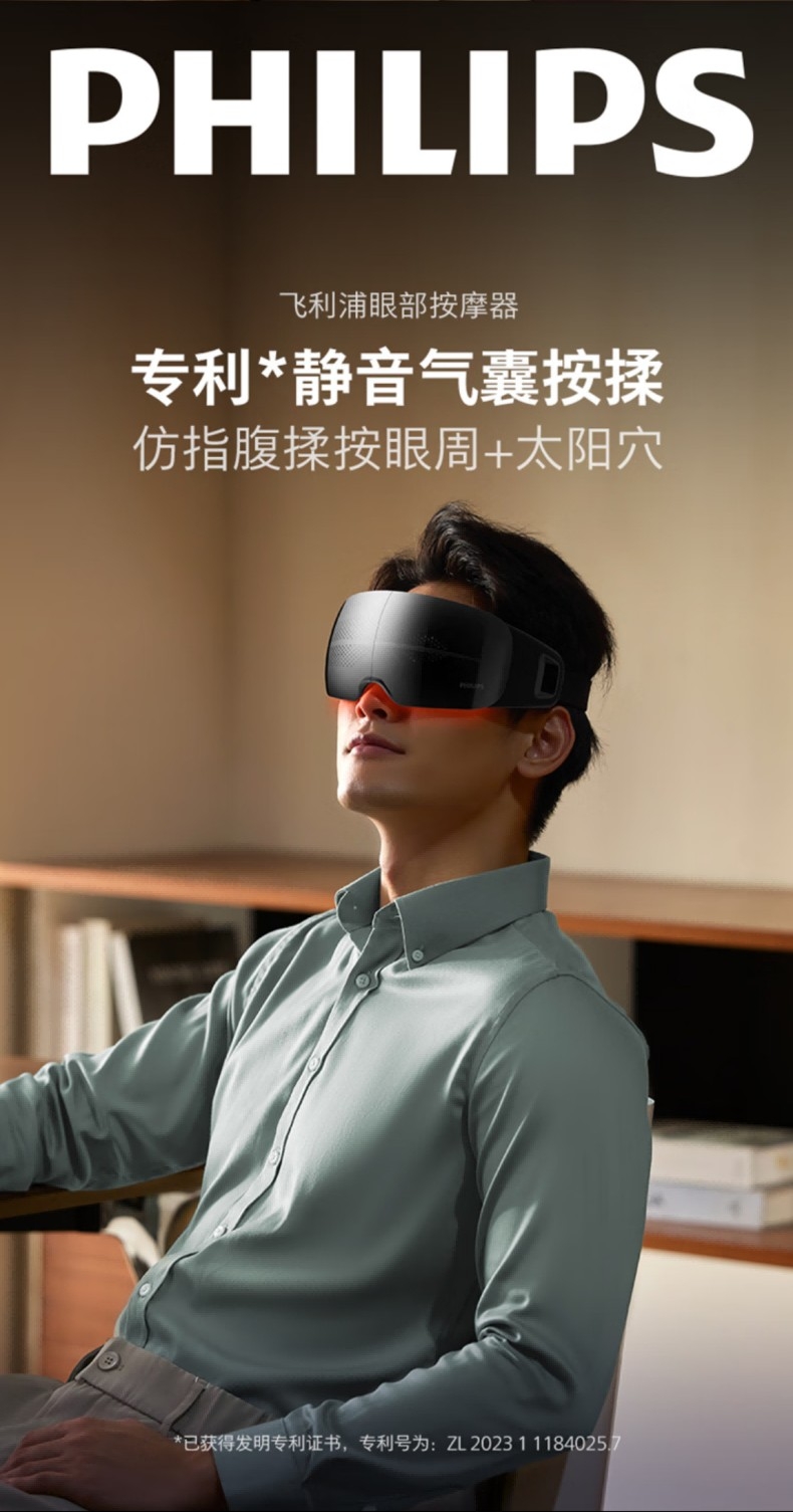 飞利浦 热敷护眼疲劳舒缓眼部静音按摩仪PPM3104E