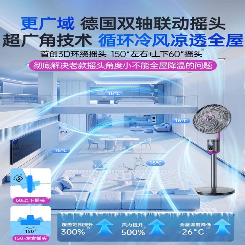 德国品牌品质,智能语音操控,无需动手轻松调节;空气循环 + 全屋降温,静音摇头,换气更均匀;智能遥控定时,家用办公卧室适配,舒适又省心