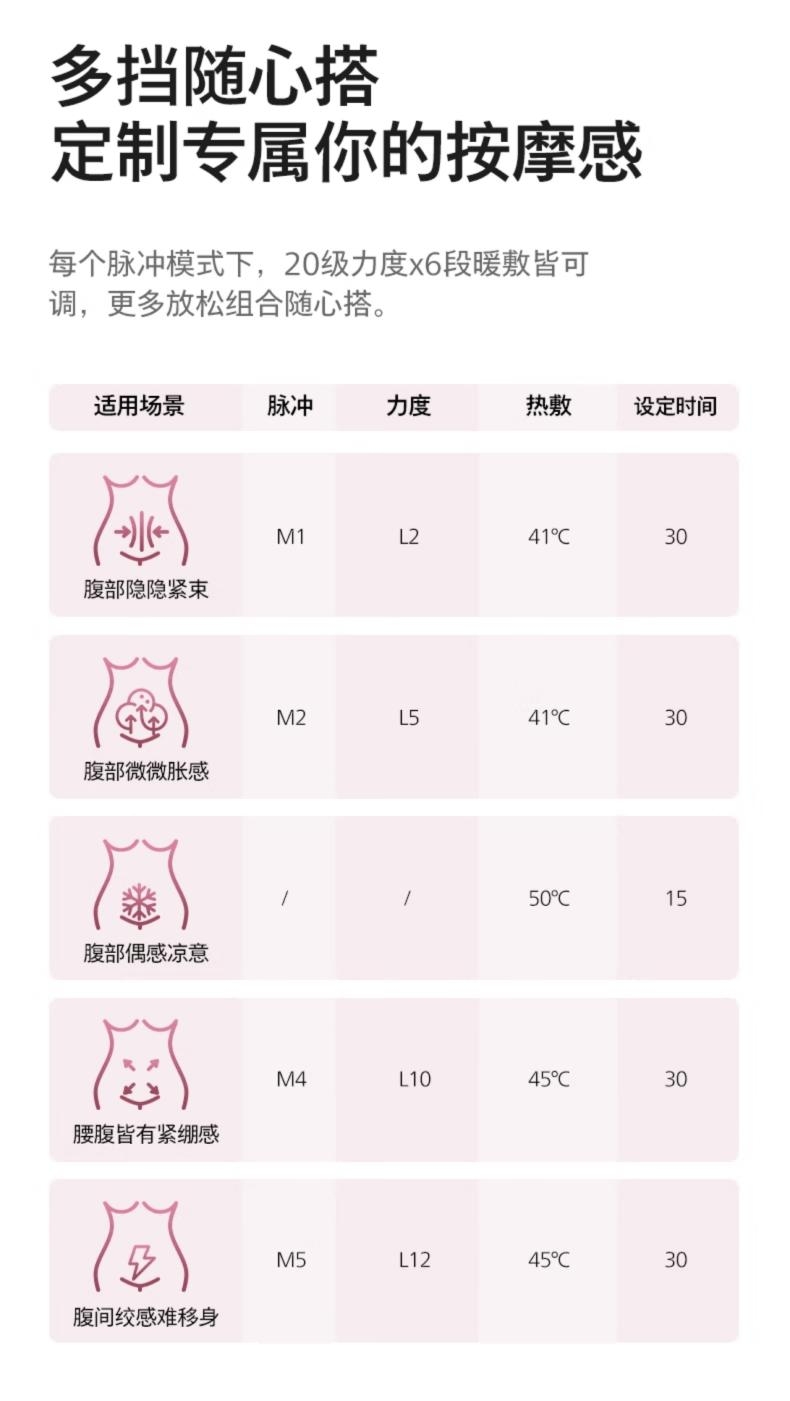 暖宫护腰:热敷+振动双效,缓解痛经、宫寒与腰酸;轻薄隐形:贴身不臃肿,内穿也不明显;多场景可用:办公、居家、出行都适配;操作简单:一键控制,温控清晰;安全耐用:定时 + 防过热,使用更安心