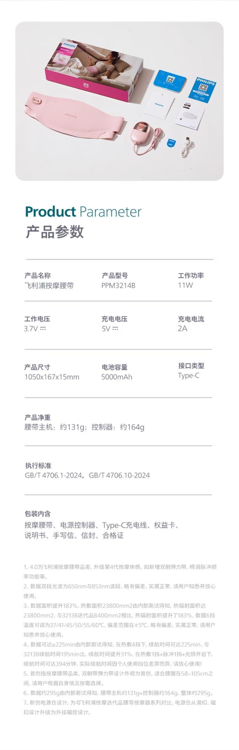 飞利浦 腰部按摩器暖宫腰带PPM3214B