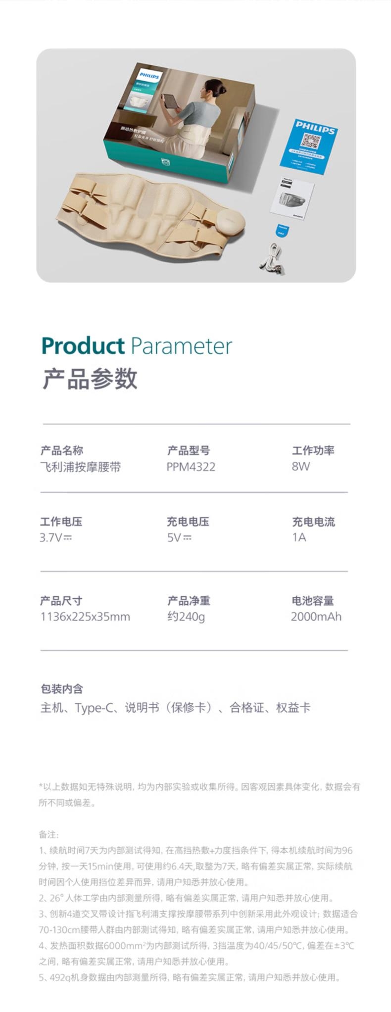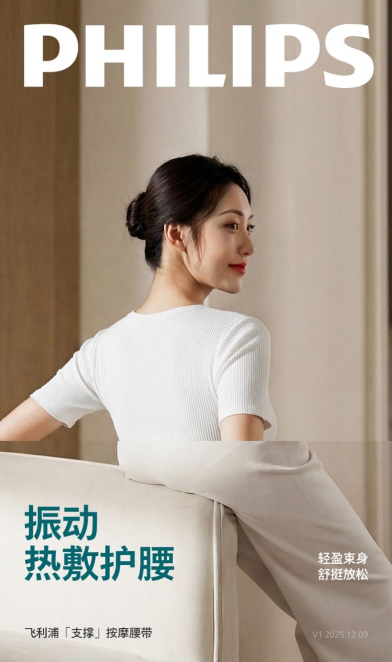 飞利浦 腰部按摩器腰椎热敷支撑护腰带PPM4322
