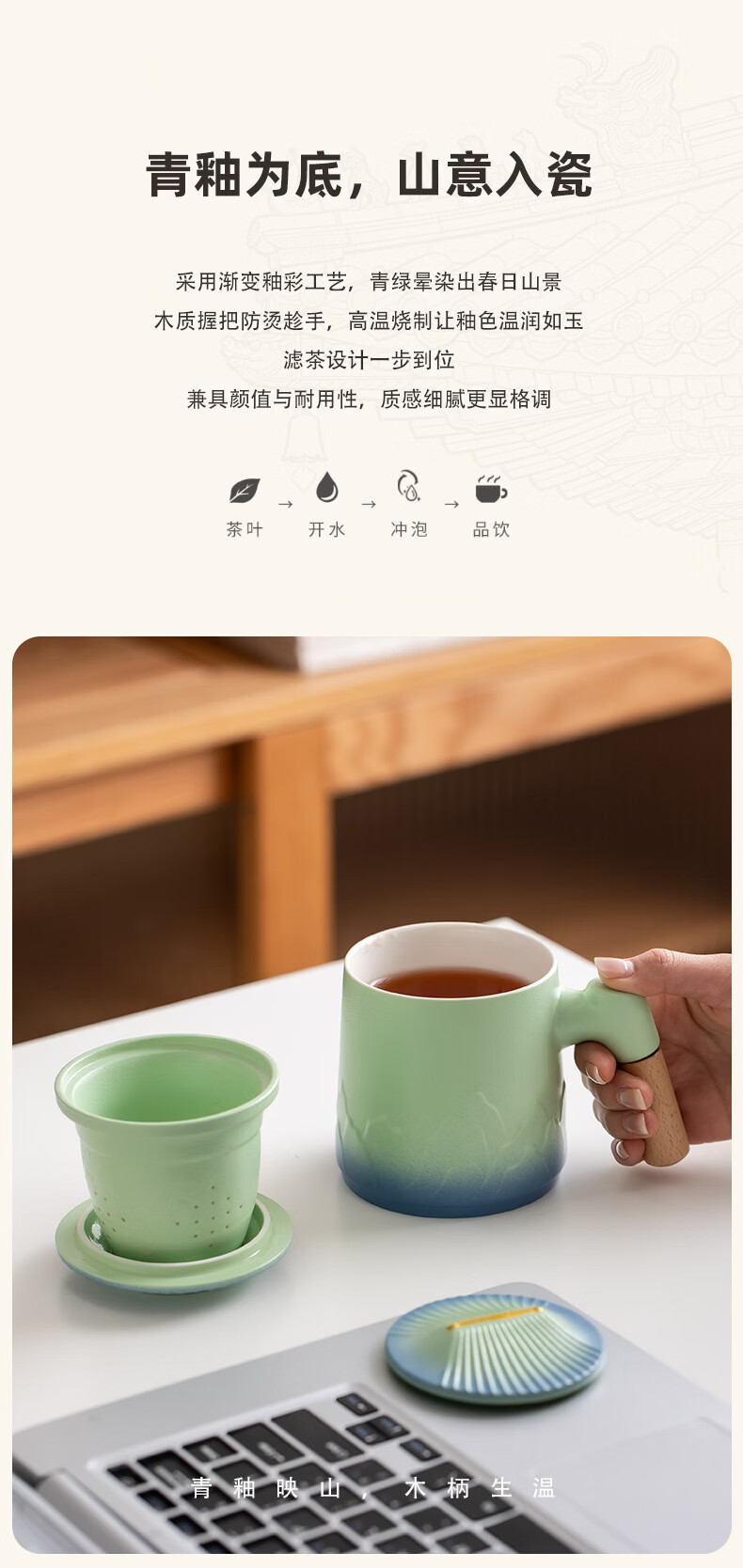 山藏杯底,味在茶中;礼盒藏意,礼赠有心;青绿釉彩,办公桌上的自然茶趣