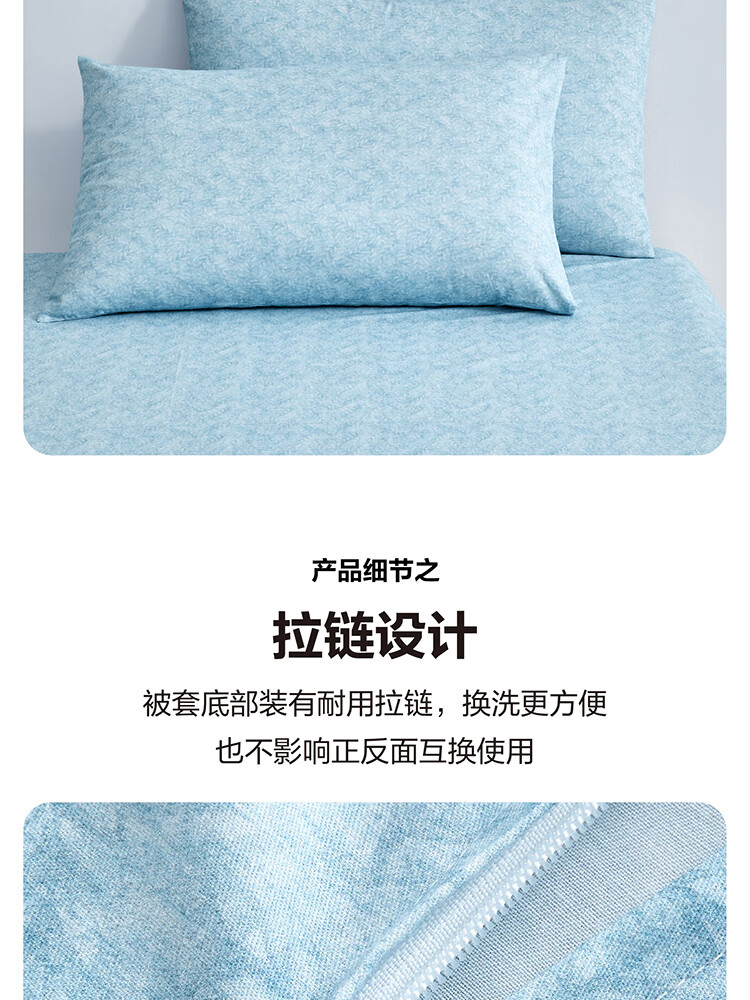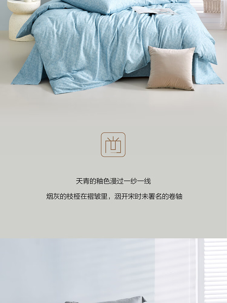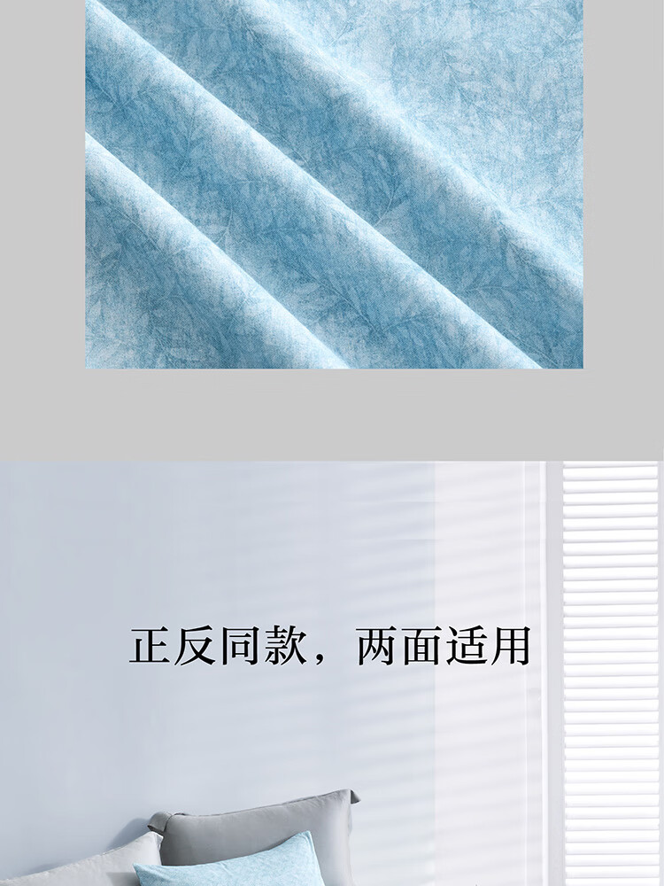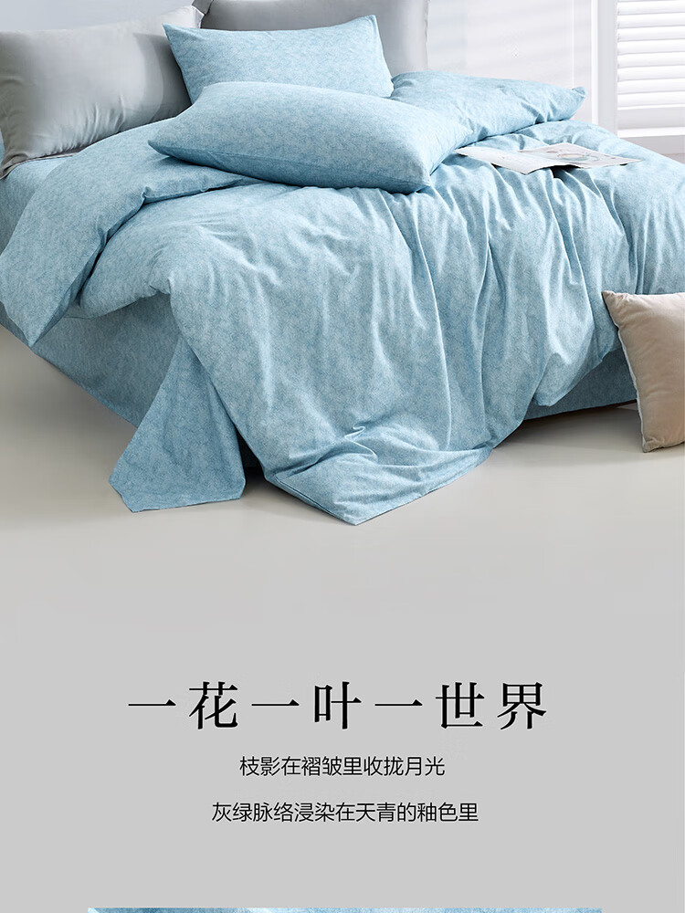 天青的釉色,浸染过的柔软;优质印染工艺,色牢度好;全棉的面料,AB两面用