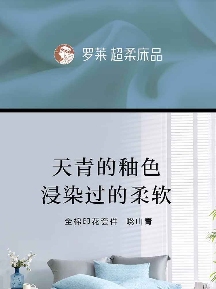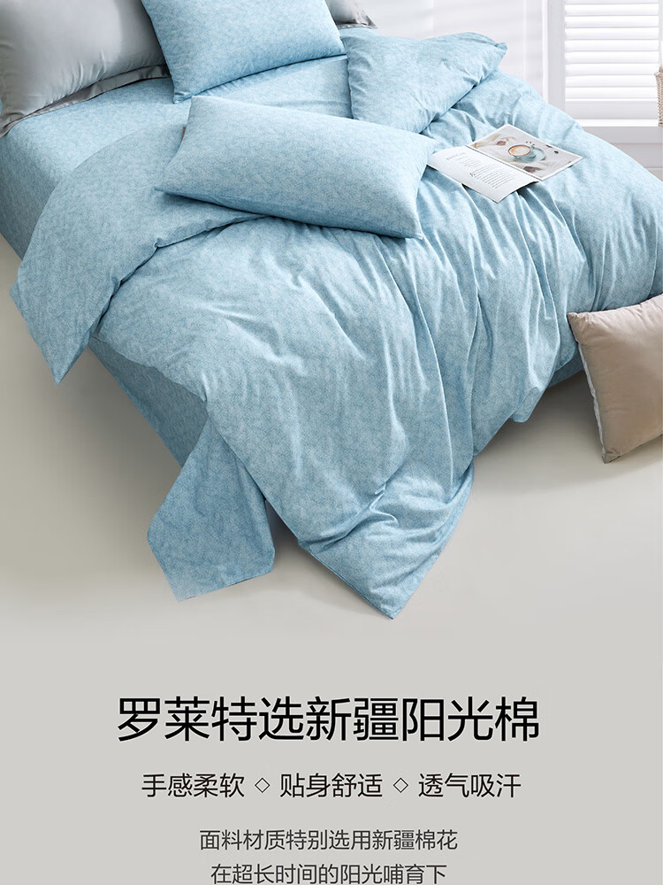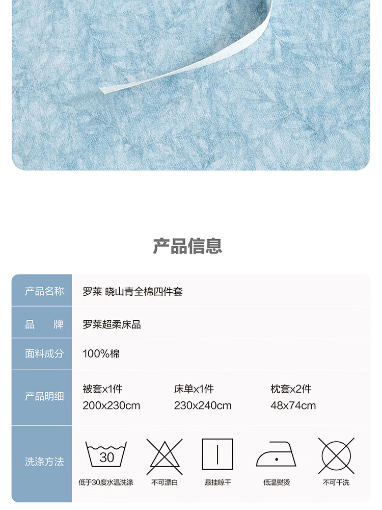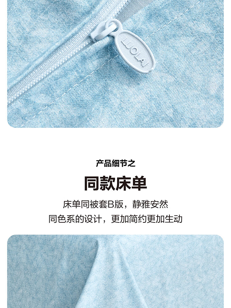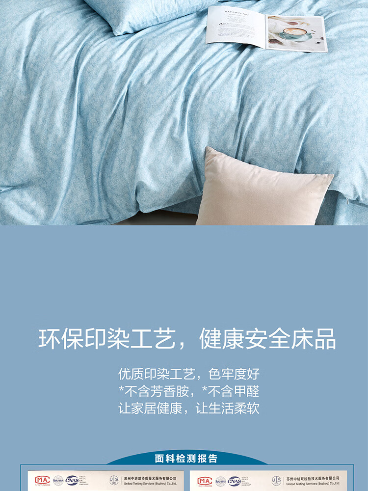 天青的釉色,浸染过的柔软;优质印染工艺,色牢度好;全棉的面料,AB两面用