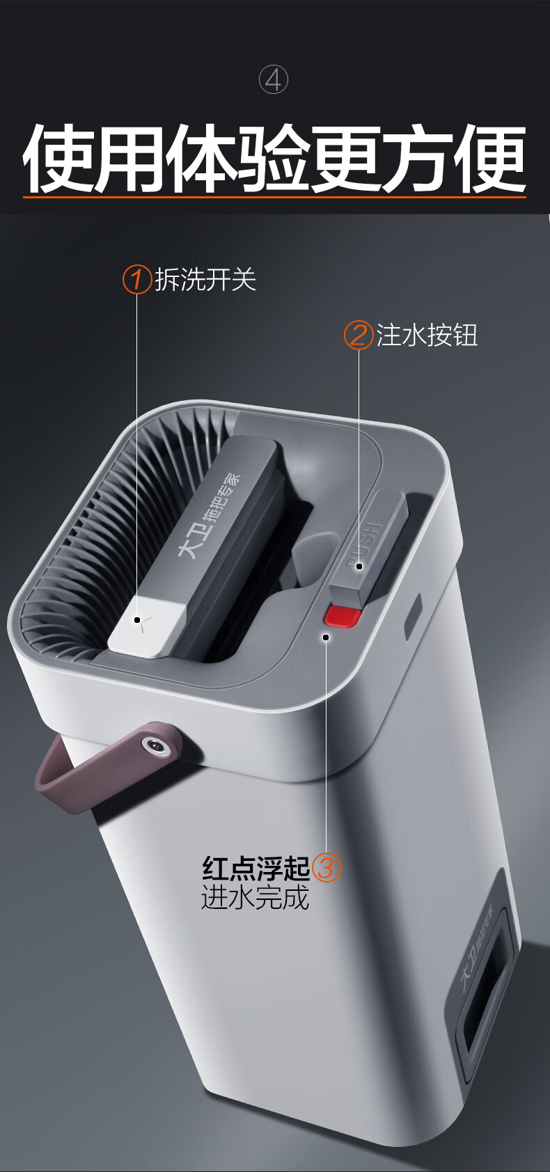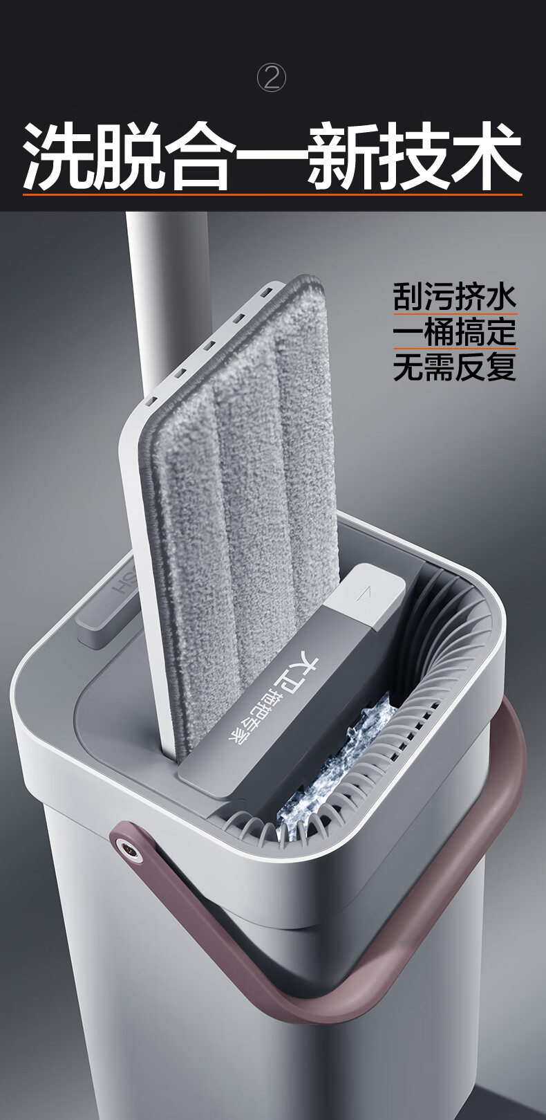 免手洗平拖升级版;有桶清洗更方便;直立刮污更省力