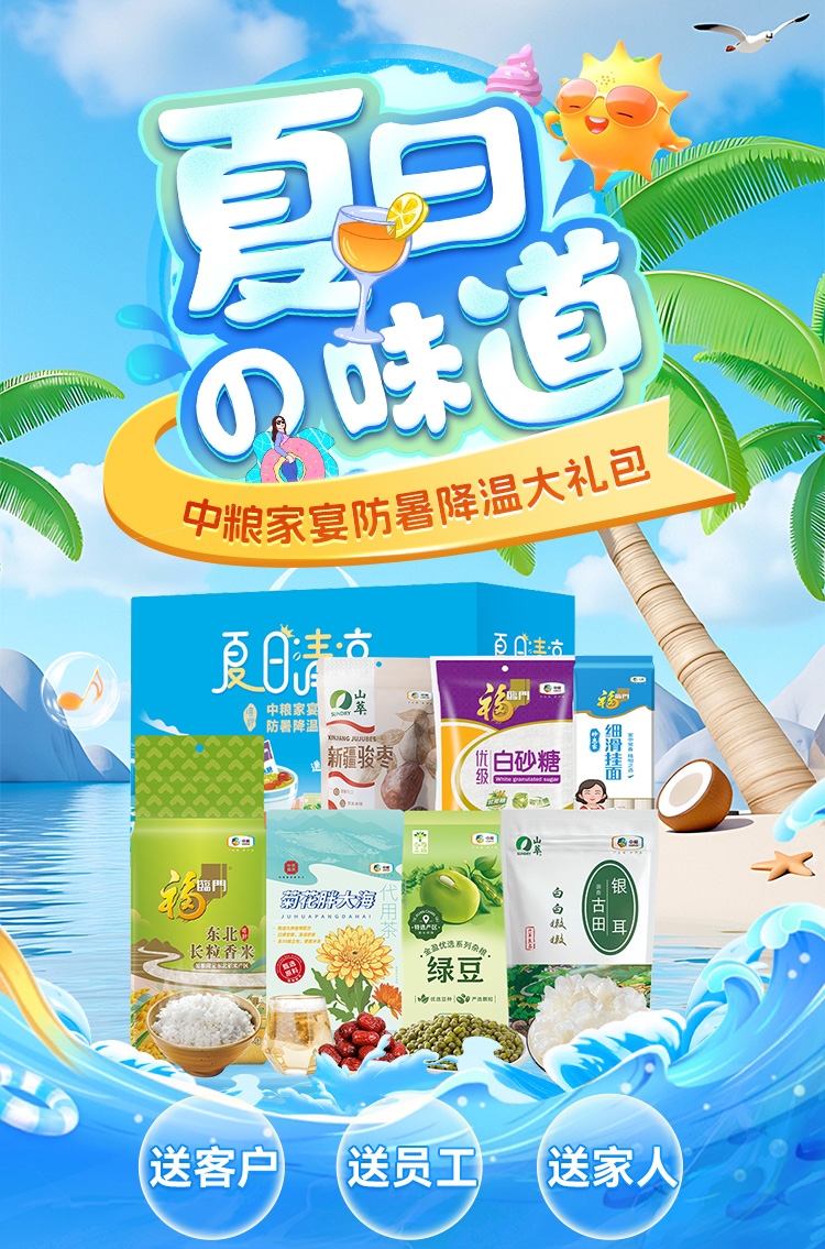 精选夏日厨房四宝,米糖杂粮全配齐;适合熬粥煮汤煲糖水,清凉解暑滋养一夏。;央企品质高温慰问,单位福利发放体面又贴心。