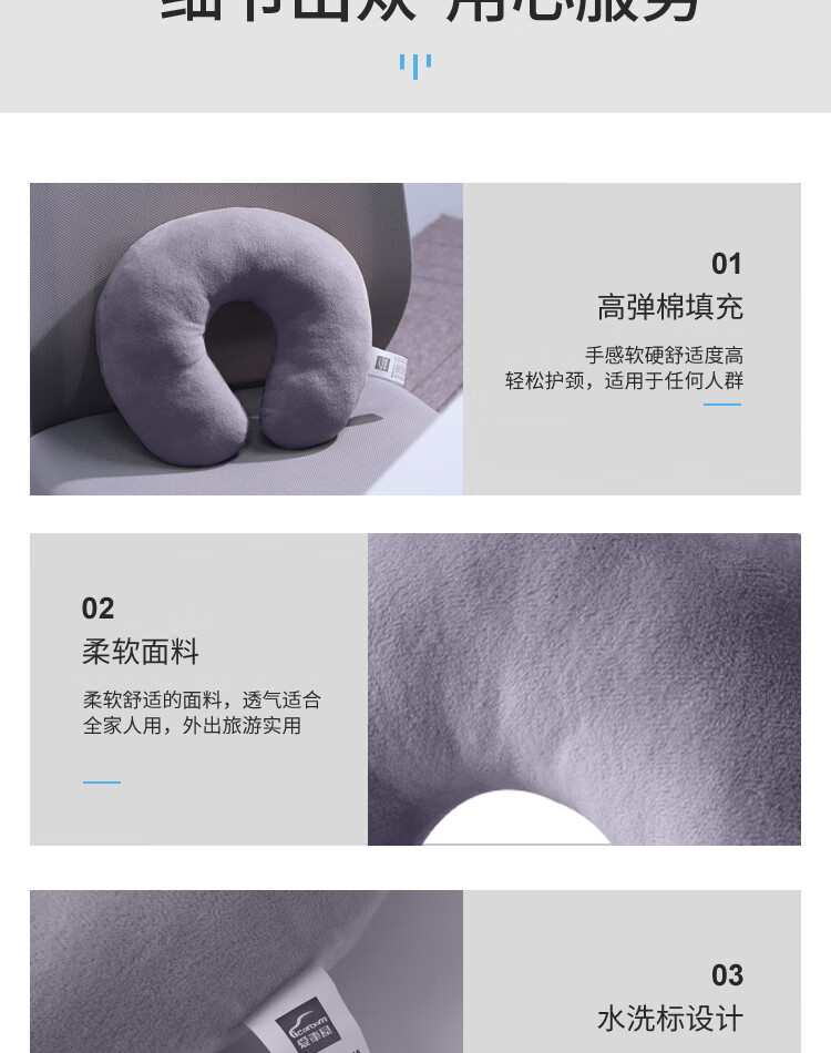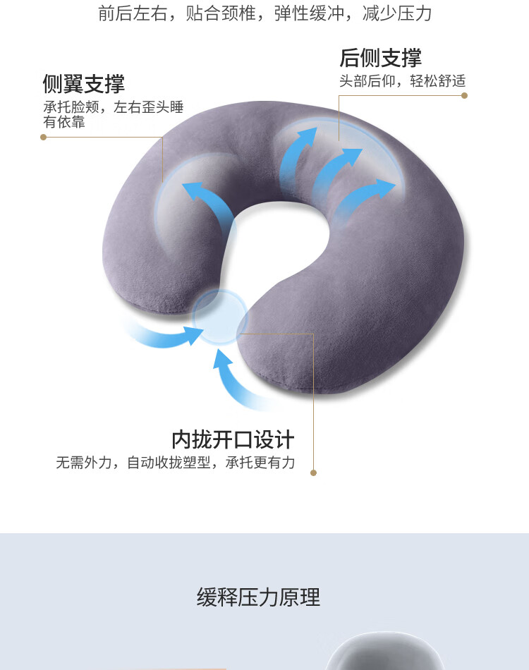 超柔面料,亲肤柔软,呵护自己;人体工学设计,适合您的颈椎、头部休息;多区缓压,舒适枕靠