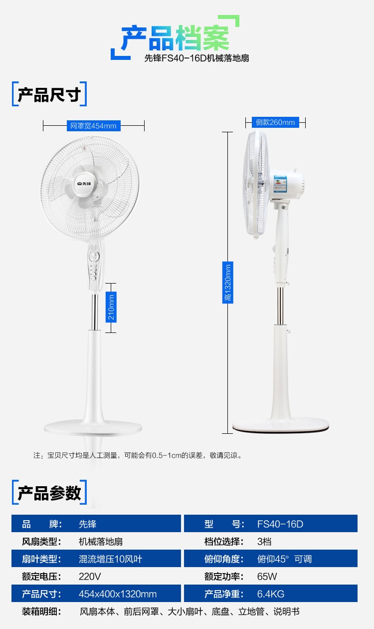 先锋 落地扇FS40-16D