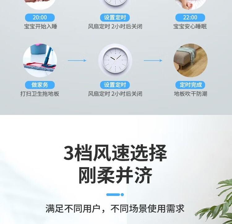 左右摇头90度 ;3档风速;1小时定时