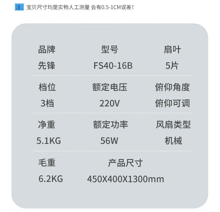 先锋 省电落地扇家用FS40-16B