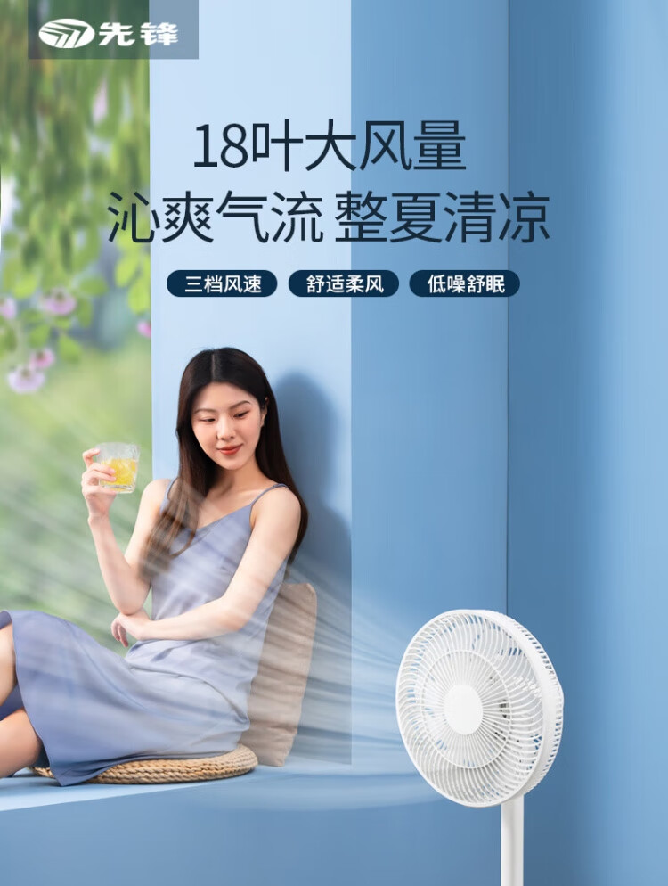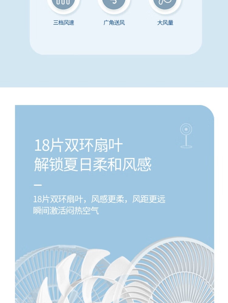 18片双环扇叶 ;顶部旋钮设计;三档风速调节