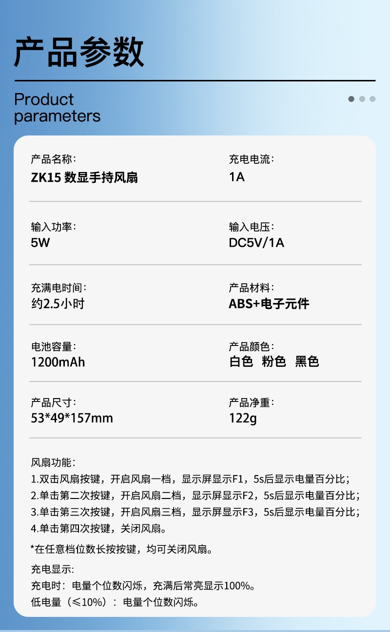 KEIDOL 数显手持风扇ZK15