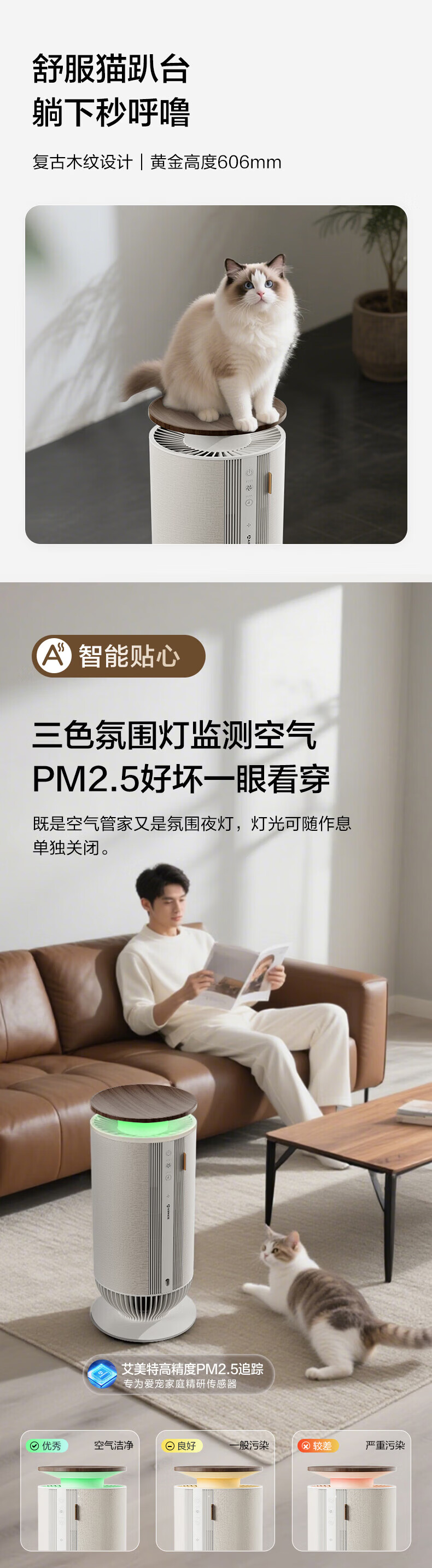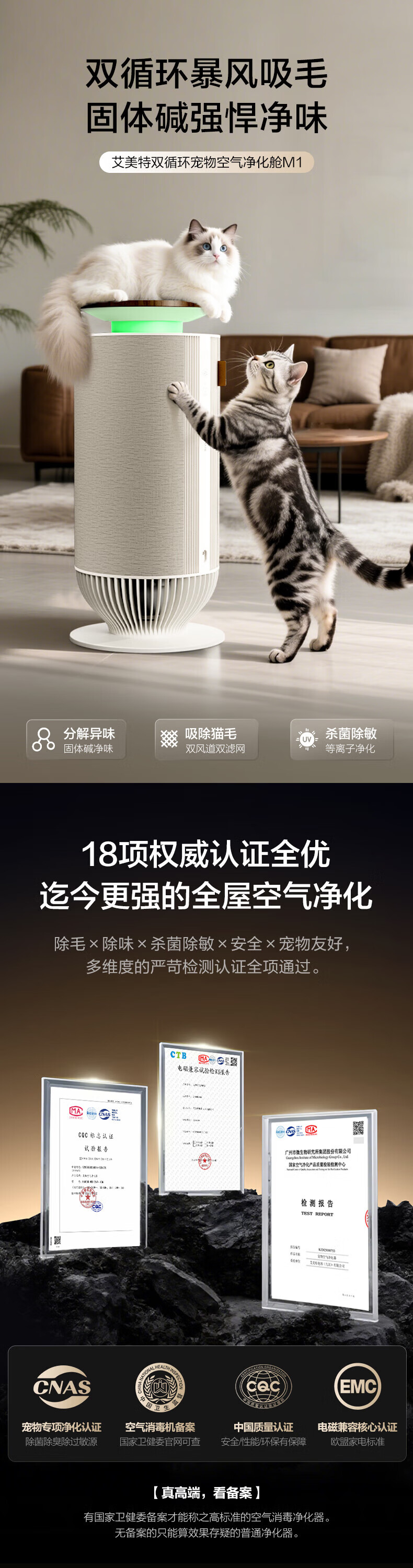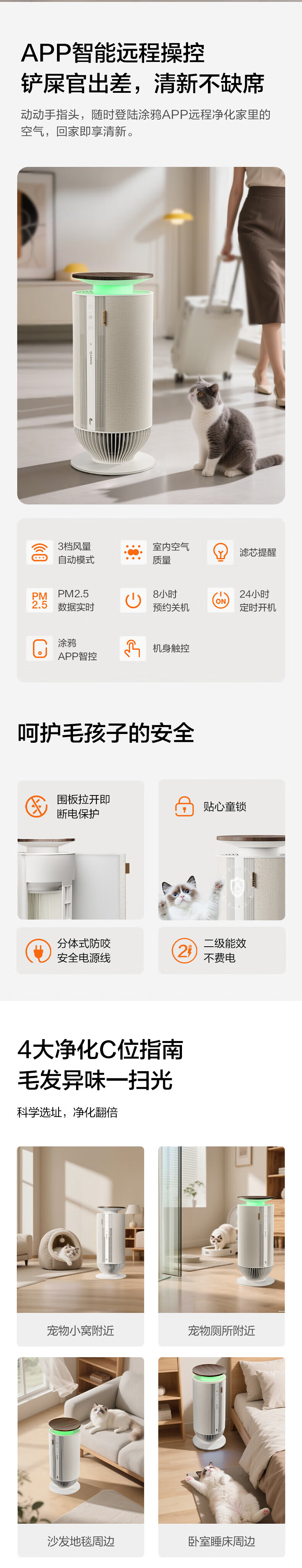 宠物,猫毛,随便吸附;双循环气流风,360度无死角;H13级滤网,过滤颗粒物