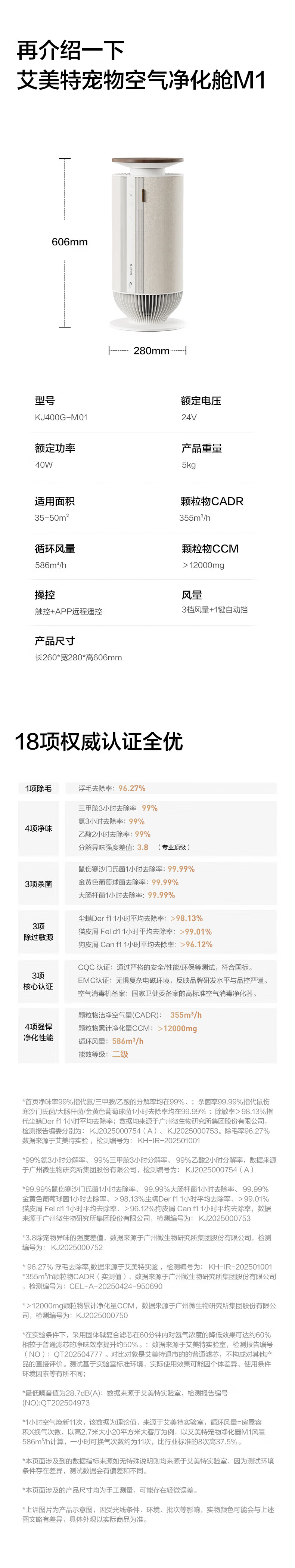 艾美特 空气净化器宠物净化器吸猫毛KJ400G-M01