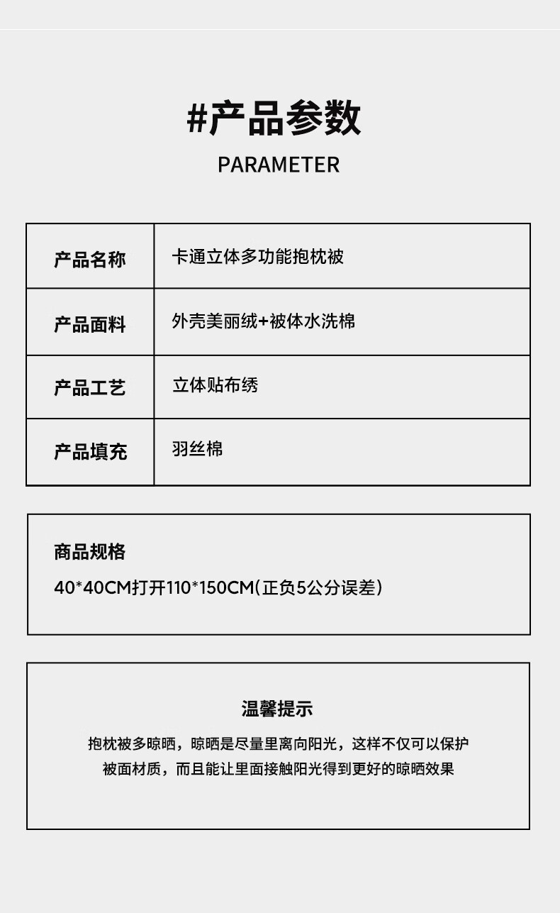 规格::40*40cm展开被子110*150cm