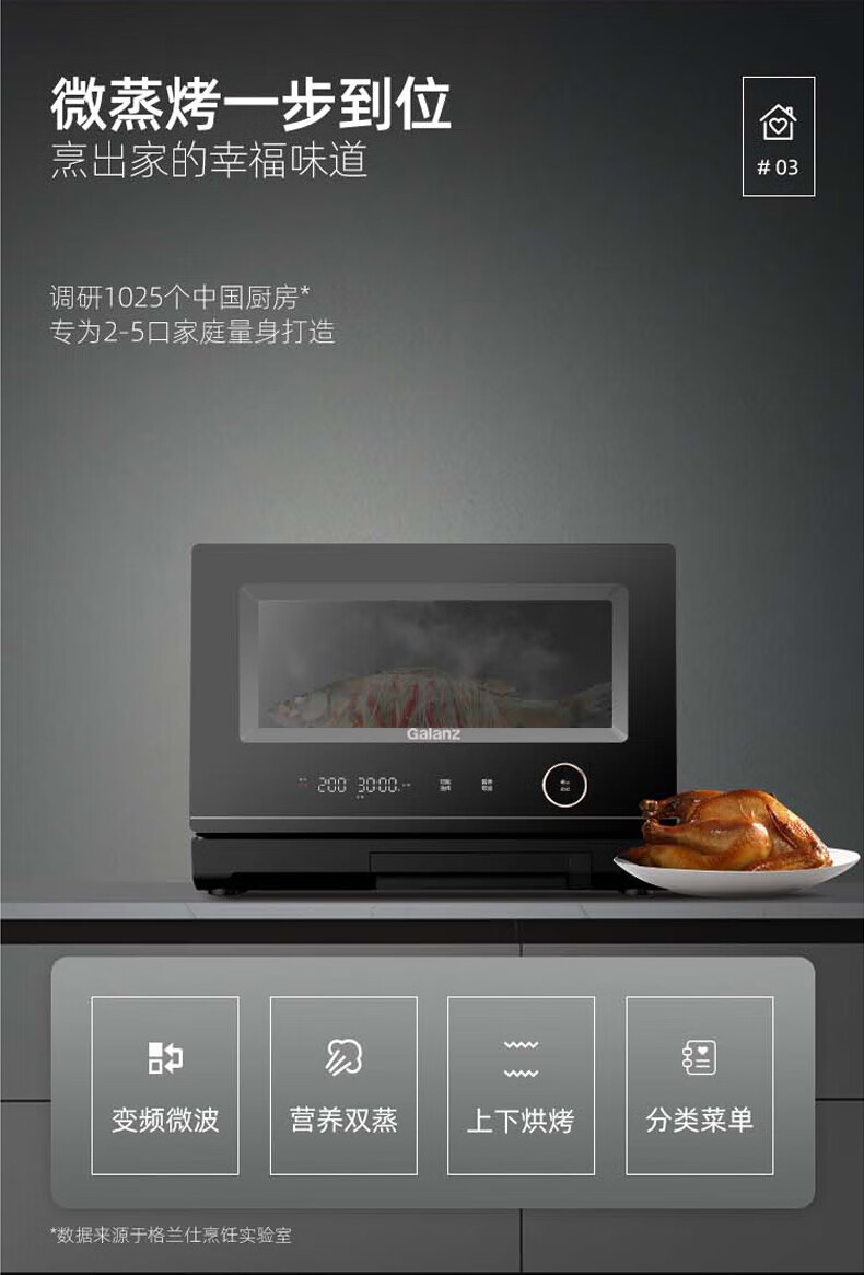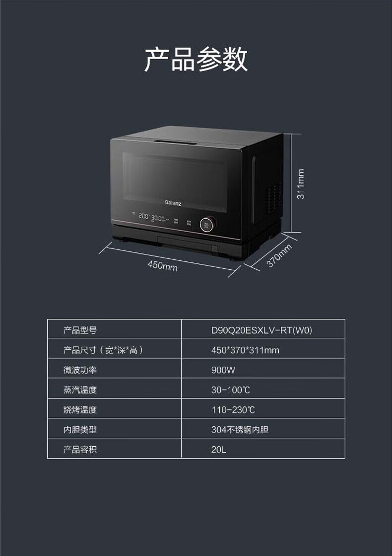 微蒸烤三合一一体机;不锈钢内胆变频更实用;20L迷你容量厨房更易搭配