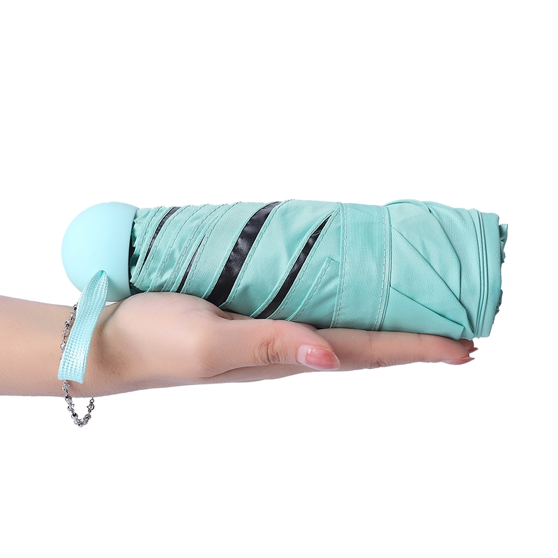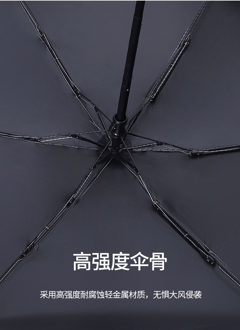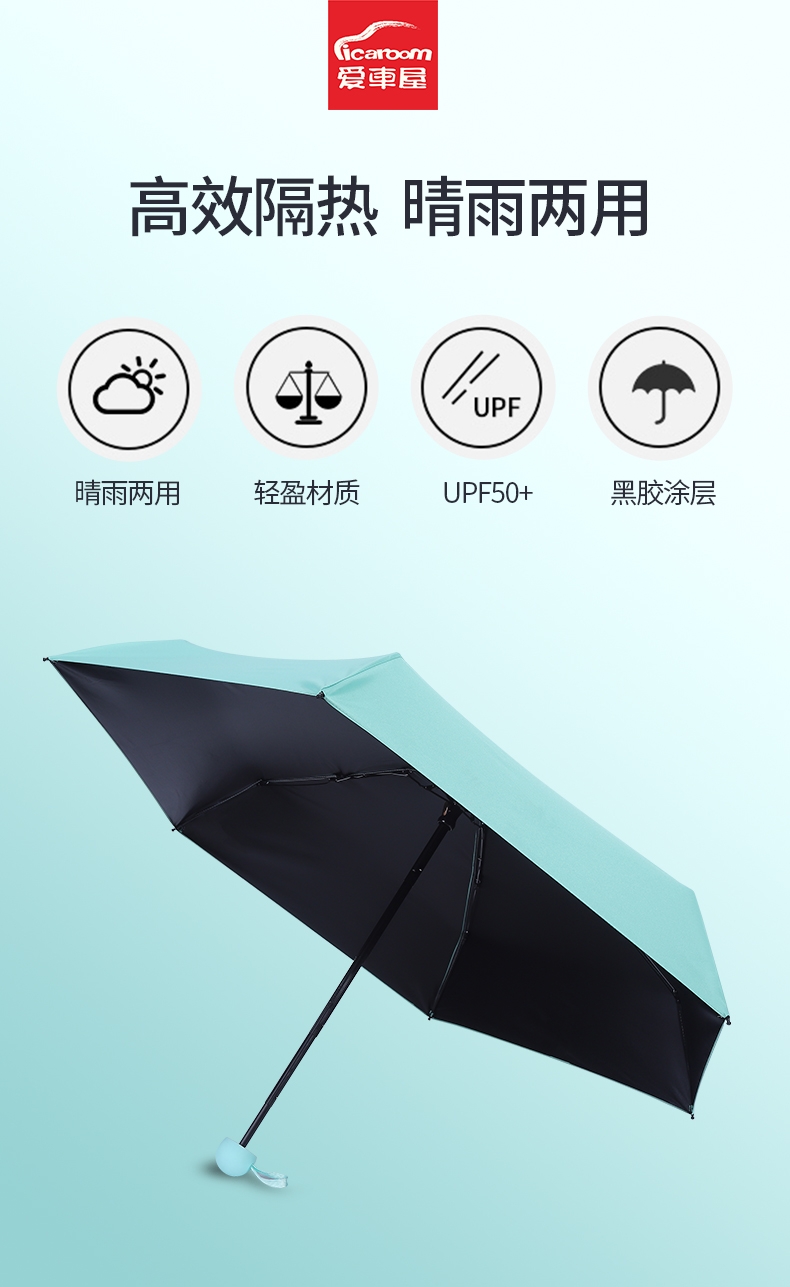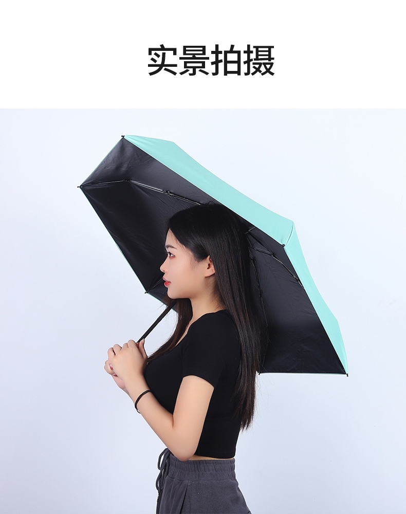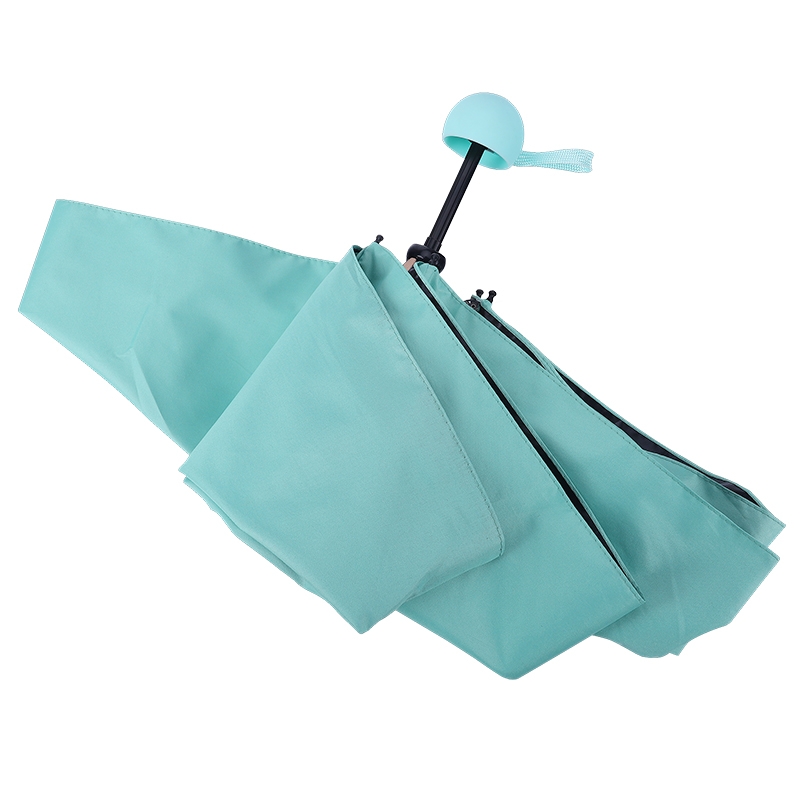 大伞面,小身材,轻重量;独特工体美学设计,雨伞外层果绿色,内配黑胶;圆润细滑的手柄