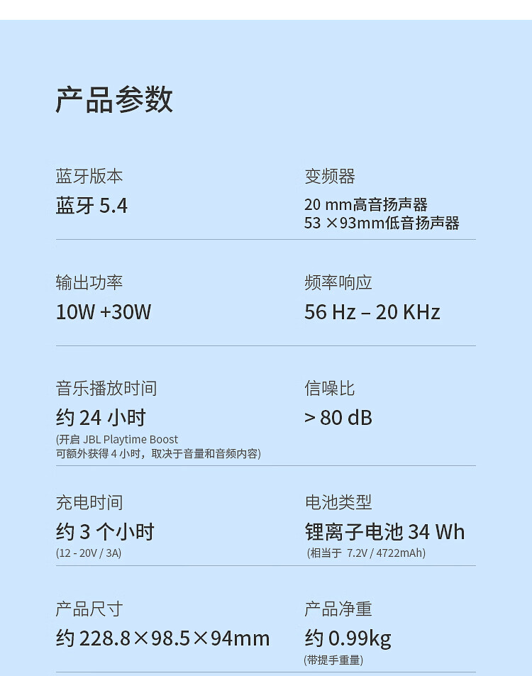 AI音效增强技术、传奇音质;;约24小时强大续航;;防摔、IP68防水、防尘;;响应频率:56HZ-20KHZ;;蓝牙5.4、支持快充。