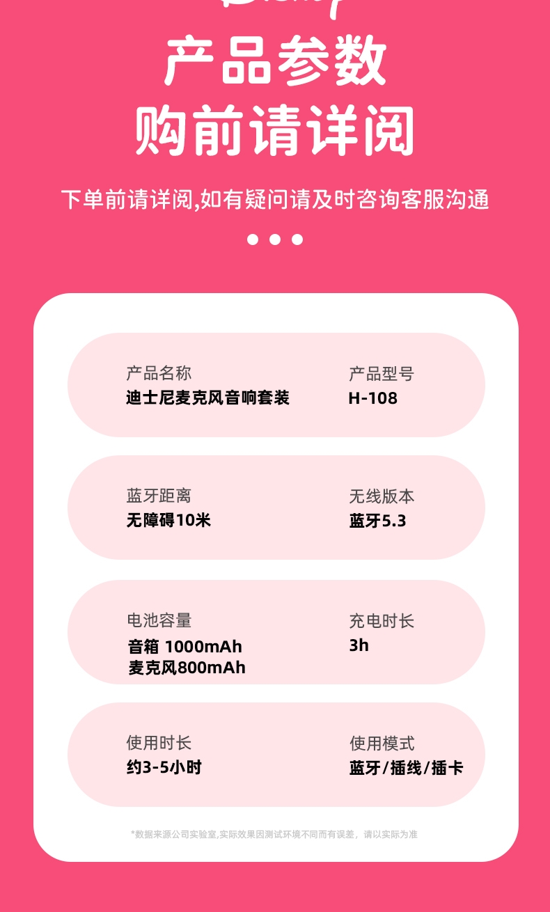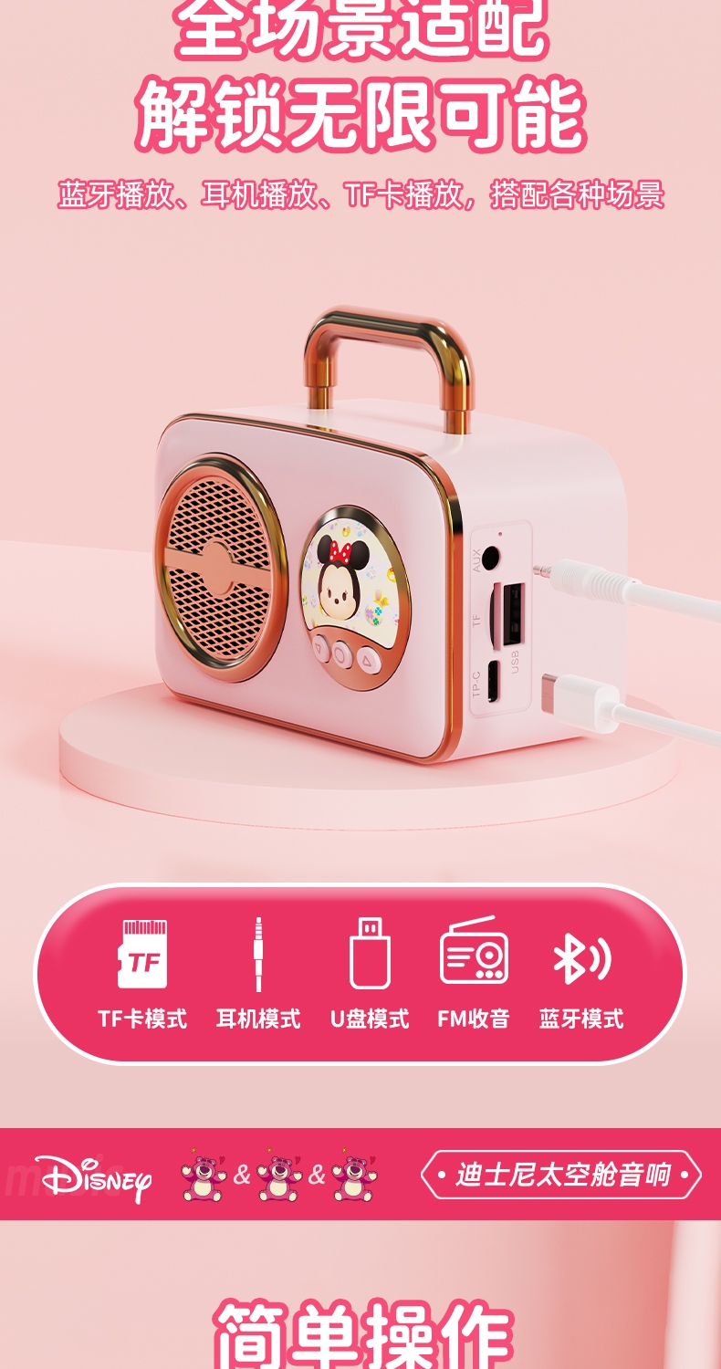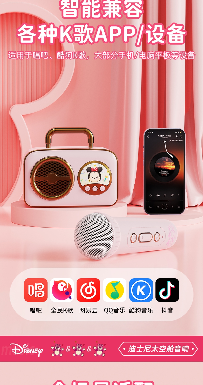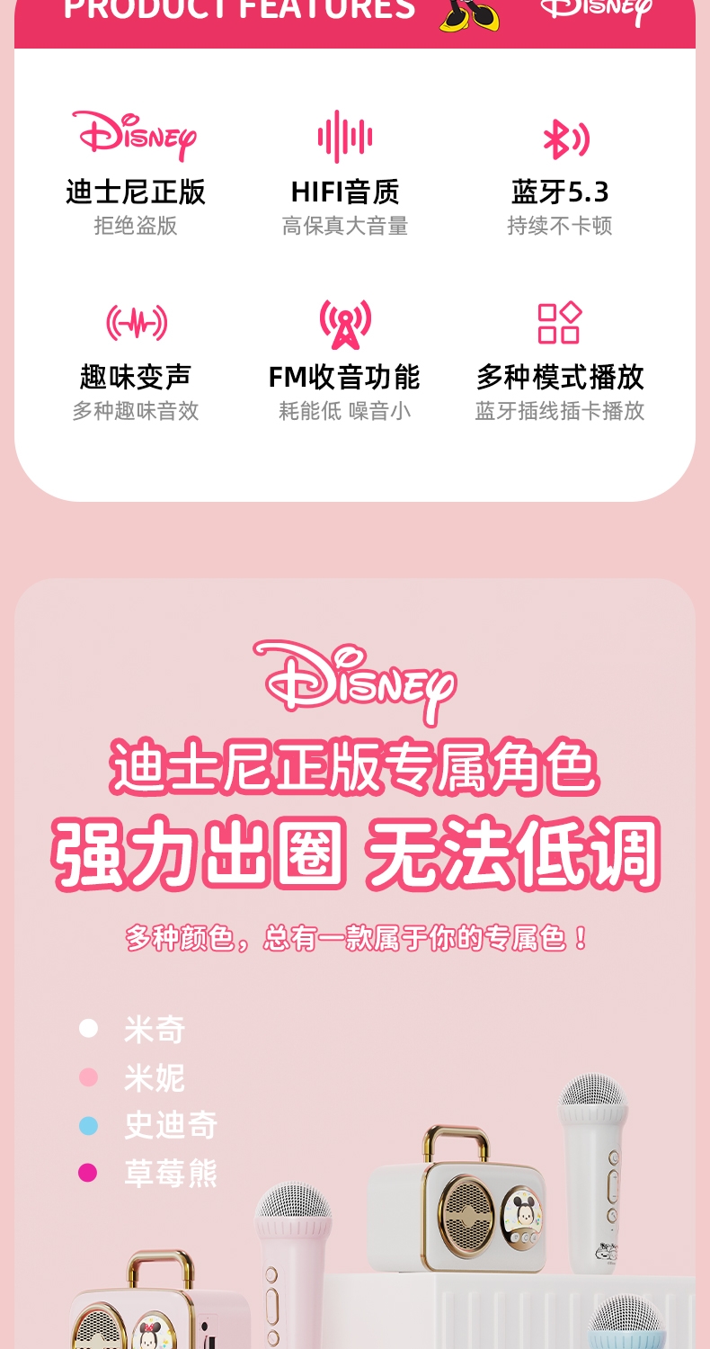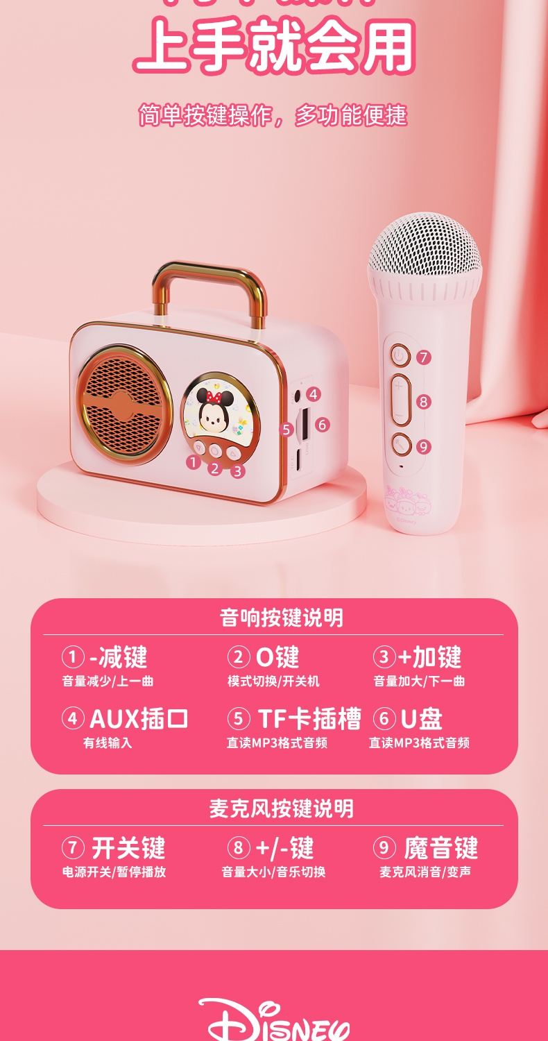 迪士尼 无线蓝牙音箱K歌宝儿童礼品音响H-018