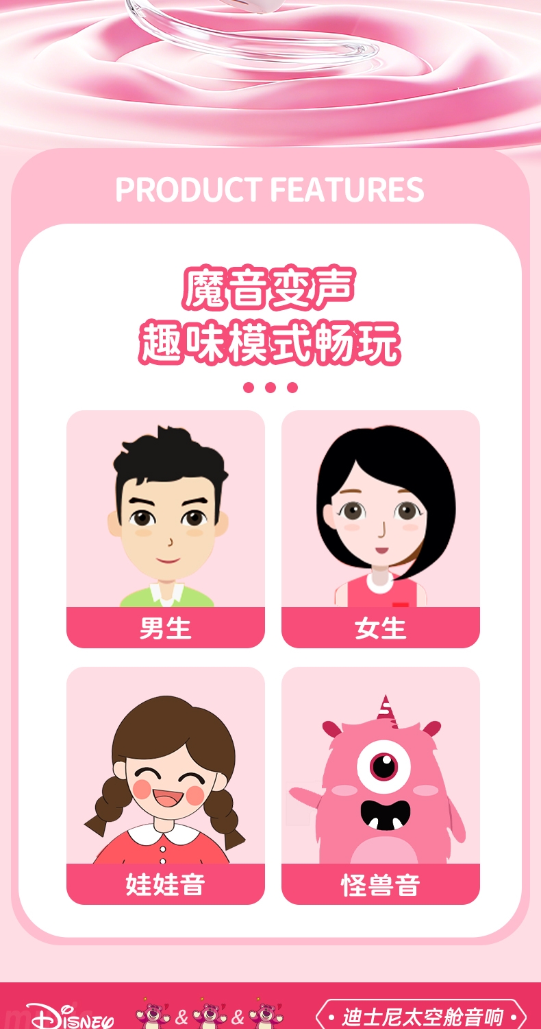 趣味变声多种趣味音效HIFI音质高保真音量蓝牙音箱;支持TF卡外观精致可爱小巧轻盈不卡顿儿童赠送礼首选;独立麦克风+音箱组合多种应用场景:教学扩音家用聚会